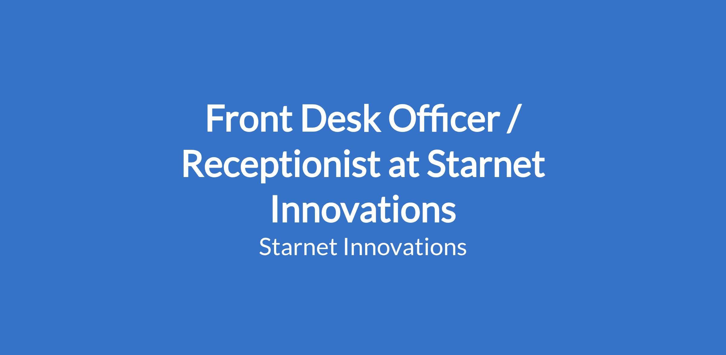 Starnet Innovations is looking for a professional, friendly, and organized Front Desk/Receptionist to join our team in Enugu.