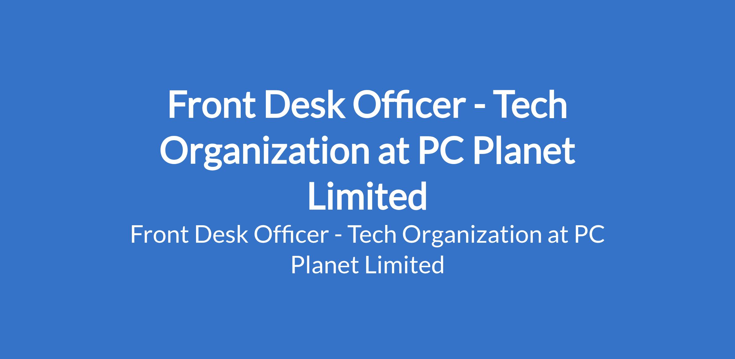PC Planet Limited is recruiting to fill the position of: Front Desk Officer - Tech Organization. The position is located in Lagos State. Interested candidates should possess minimum of First Degree in any relevant field with proven experience as a Front Desk Officer, Receptionist, or similar role is an advantage.