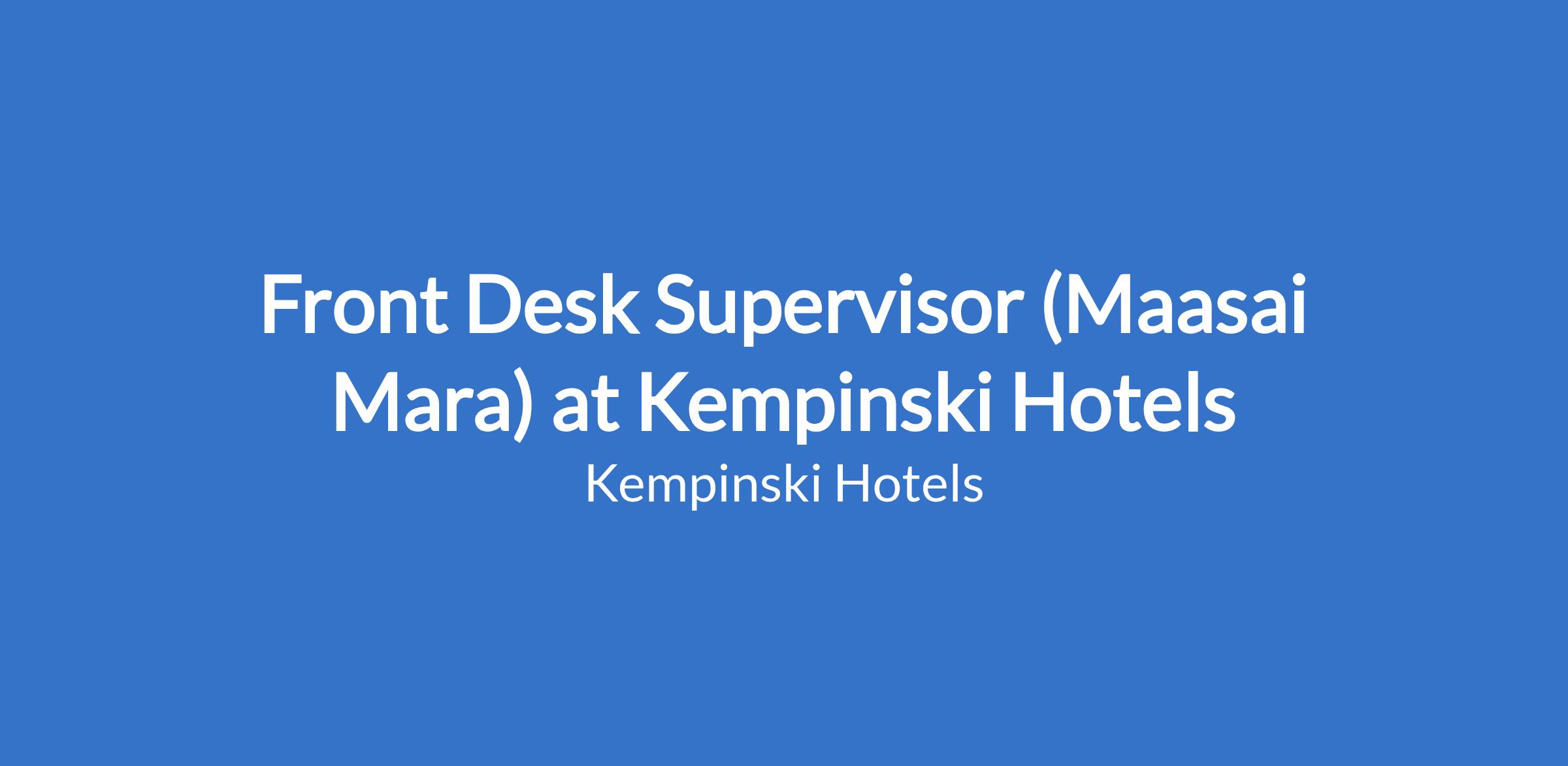 Minimum 5 years Front Office Supervisory position most preferably at the Maasai Mara