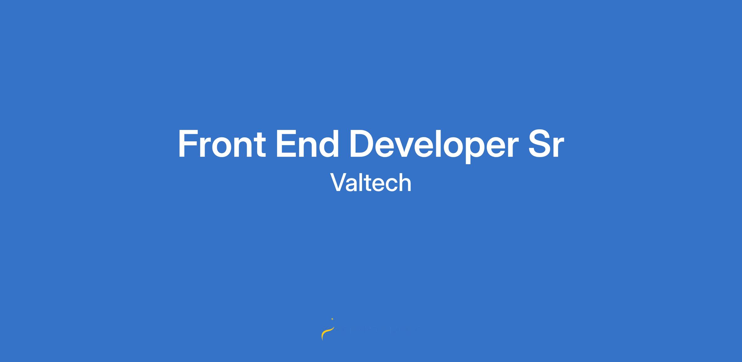 A Valtech é uma empresa Digital global que possui escritórios em mais de 20 paÃses focada na transformação dos negócios por meio da inovação digital.Nós projetamos e construÃmos experiências únicas, executamos esforços de melhoria contÃnua e vivemos, alimentamos e impulsionamos a transformação dos negócios em todo o mundo digital. Apoiamos nossos clientes na pesquisa, design e marketing de experiências e interfaces digitais inteligentes.Nesta oportunidade, estamos à procura de um(a) Front End Developer Senior para se juntar ao nosso time.Principais responsabilidades:- Participar de reuniões de design técnico com Tech Leads e Arquitetos de Software, propondo novas abordagens.- Contribuir para a definição de convenções de desenvolvimento e padrões técnicos dos projetos.- Entregar soluções de software de alta qualidade, utilizando boas práticas para garantir performance, manutenibilidade e testabilidade.- Participar da elaboração de designs técnicos para novos requisitos.- Atuar no coaching do time e na transferência de conhecimento.- Colaborar com outras equipes (DevOps, Arquitetura, Qualidade, Análise de Negócios) para melhorar a qualidade do software em todos os nÃveis.