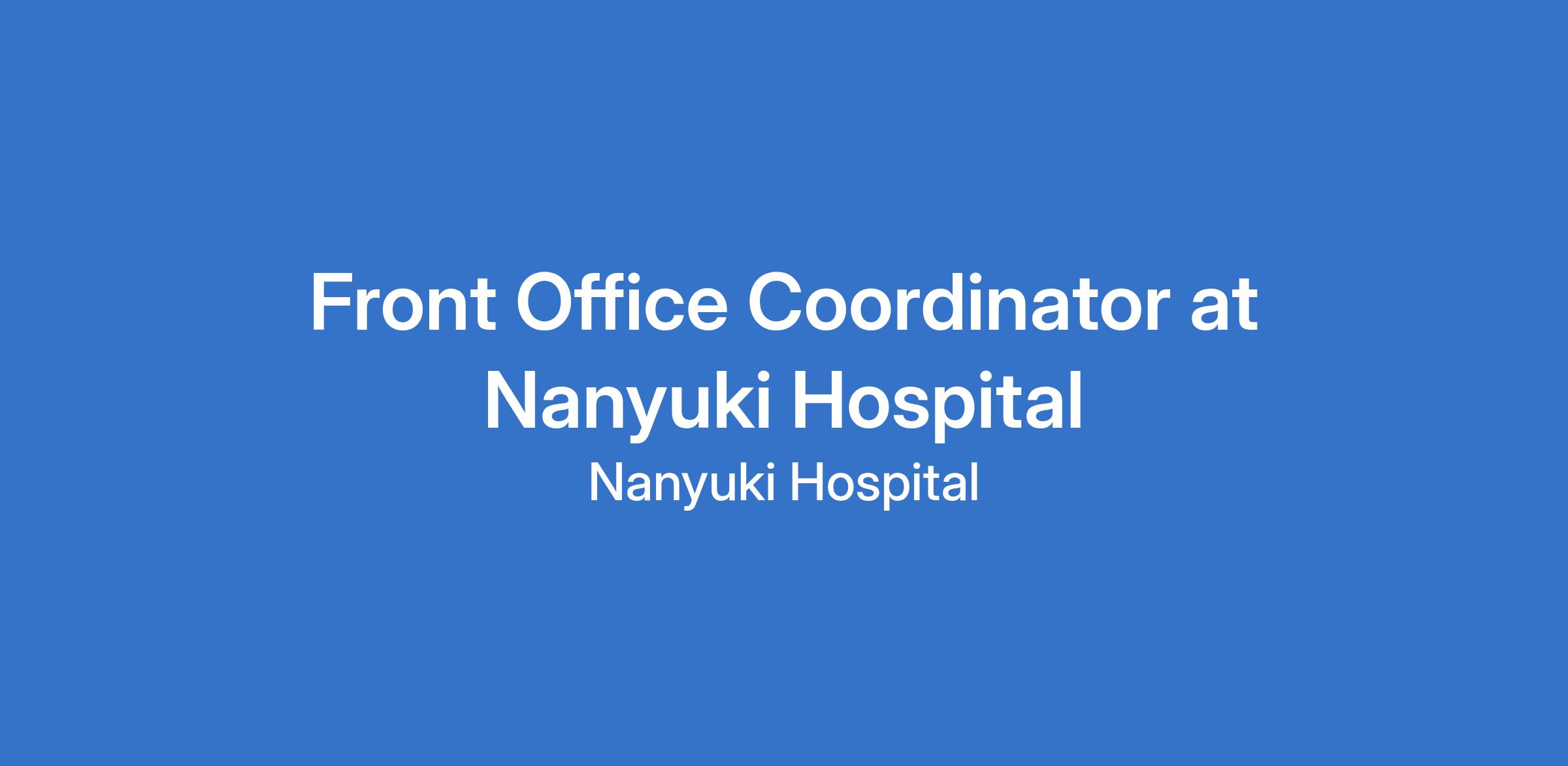 The Front Office Staff at Nanyuki Hospital plays a vital role in creating a welcoming and efficient environment for patients, visitors, and staff. The ideal candidate is friendly, organized, and professional, with strong communication skills and the ability to manage administrative tasks, appointment scheduling, and patient inquiries while maintaining confidentiality and excellent customer service.