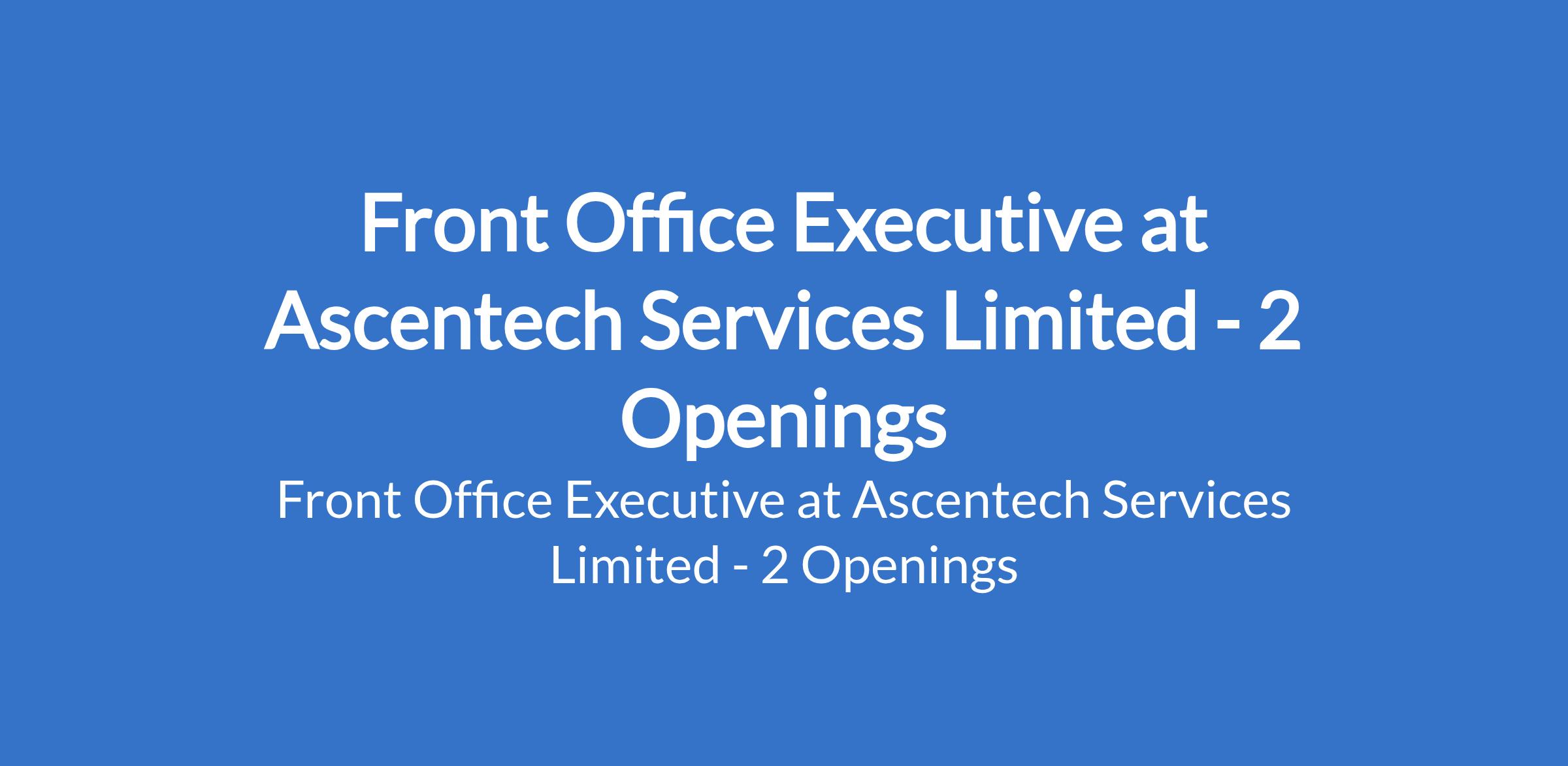 Ascentech Services Limited is recruiting to fill the position of: Front Office Executive. The position is located in Ikeja & Apapa - Lagos State. Salary: N150,000 monthly. Interested candidates should possess minimum of an OND / HND / BSc in any related fields with at least 2 years experience in a front desk or administrative role.
