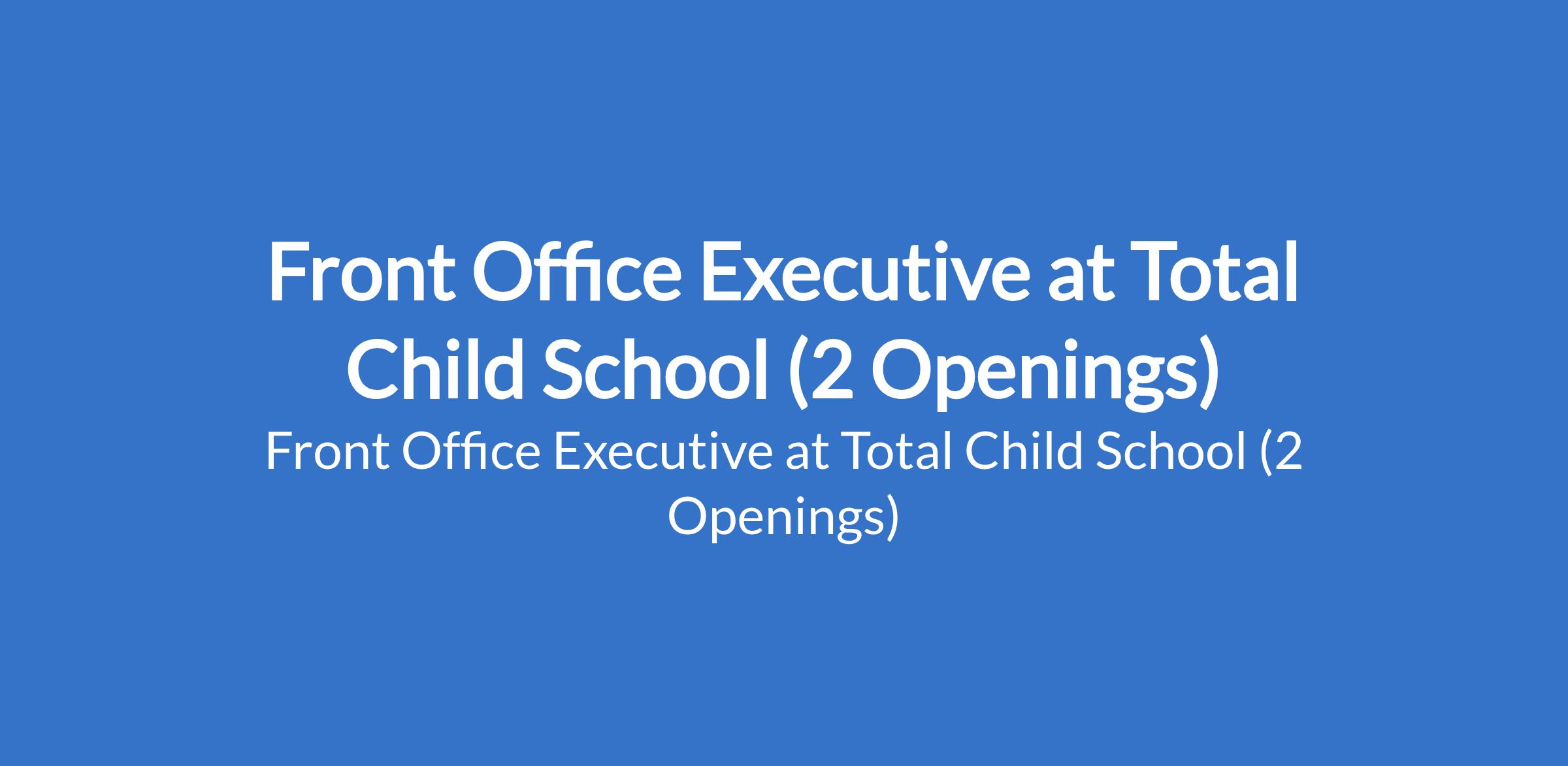 Total Child School is recruiting to fill the position of: Front Office Executive. The position is located in Gbagada & Island - Lagos State. Interested candidates should possess a Bachelors Degree in a relevant field with strong communication and interpersonal skills.