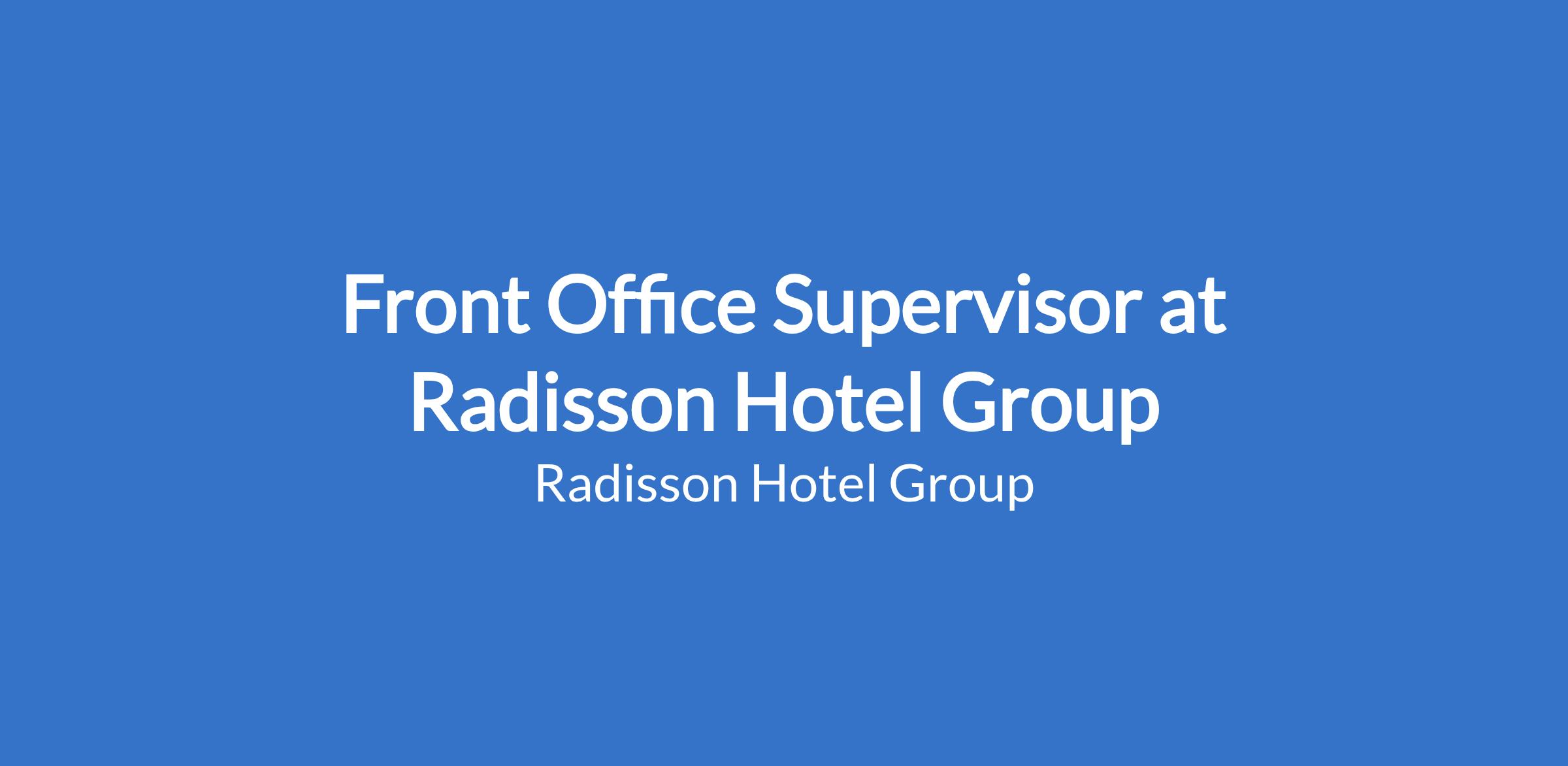We are currently seeking a Front Office Supervisor to join our vibrant team. At Radisson Hotel Group, we are in search of individuals who go beyond the resume - those with character, skills, talents, and a passion for creating memorable experiences.