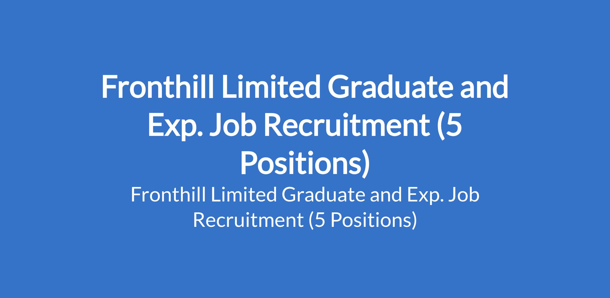 Fronthill Limited is currently recruiting suitable candidates to fill the following graduate and experienced positions in Lagos State: Electrical / Mechanical / Computer Engineering Graduate (NYSC); Sales Executive, Electrical Project Engineer, Marketing Executive, and Electrical / Mechanical / Computer Engineering Graduate Trainee.