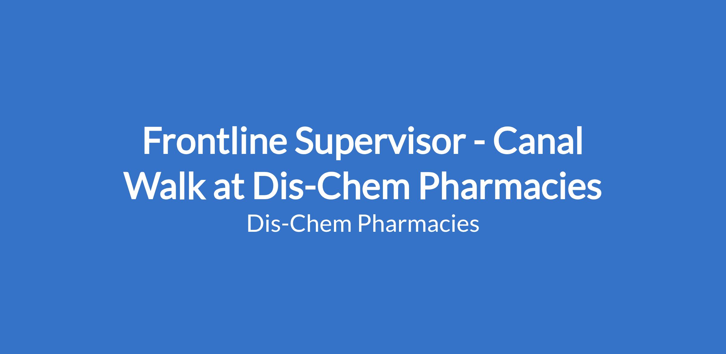 Dis-Chem Pharmacies require a Frontline Supervisor for their Canal Walk store. Support customer service to ensure a world class shopping experience. Liaise between management and cashiers. Supervise day-to-day operations of Cashiers to ensure smooth running of till points. Record customer transactions with zero tolerance towards inaccuracy and to eliminate fraud risk.