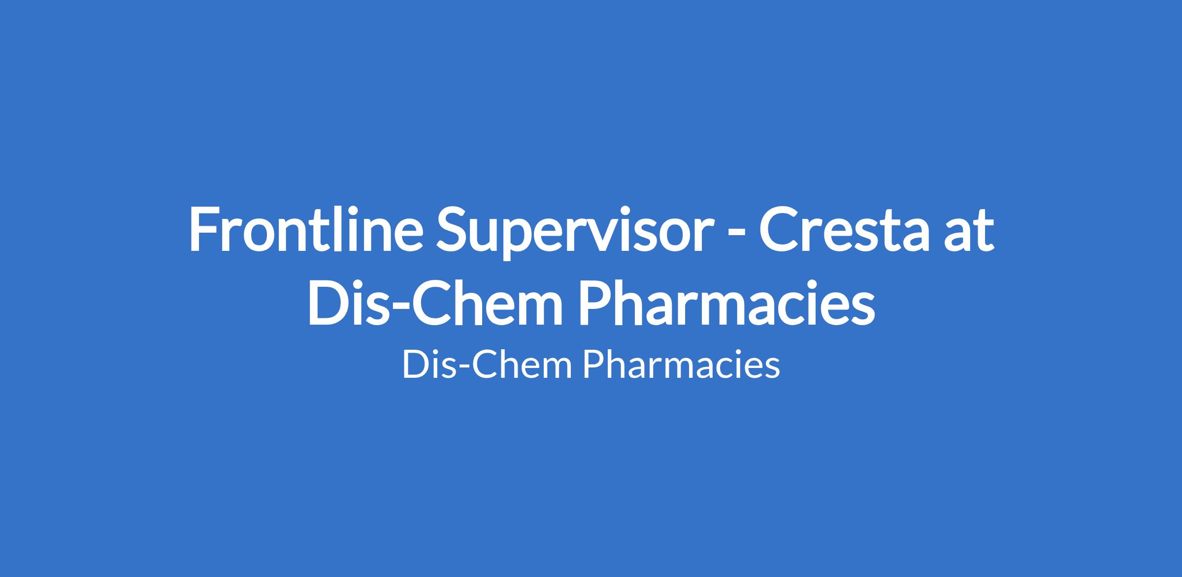 Dis-Chem Pharmacies require a Frontline Supervisor for their store in Cresta. Support customer service to ensure a world class shopping experience. Liaise between management and cashiers.