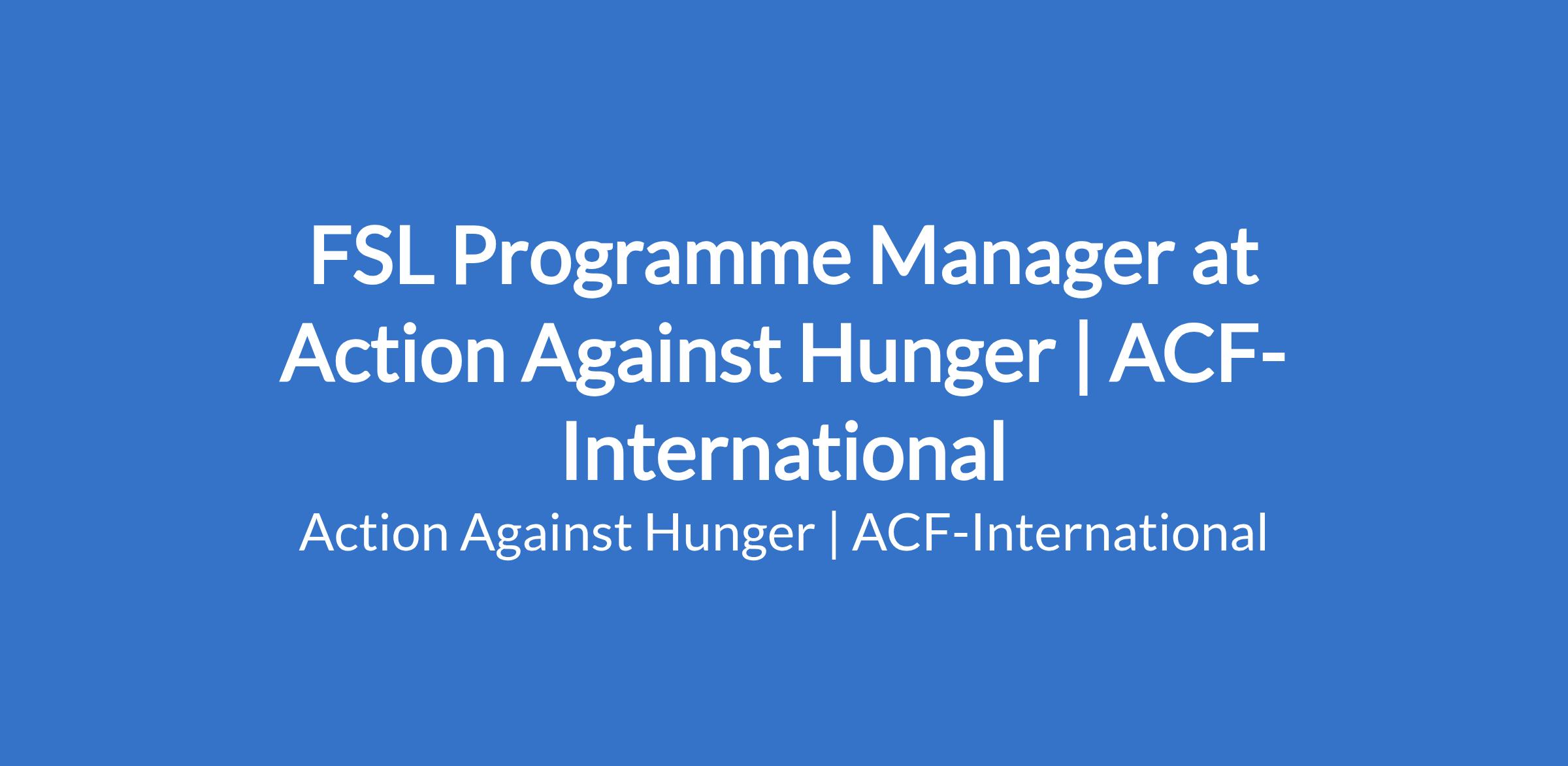 ACF Nigeria is currently seeking to recruit a Food Security and Livelihoods Programme Manager. The FSL PM will responsible for overseeing and managing all FSL activities under the FIFSAN/ECHO project, including Income Generation Activities (IGA), Farmers Field Schools (FFS), cash transfers, Cash for Work (CFW), and Village Savings and Loans Associations (VSLA).
