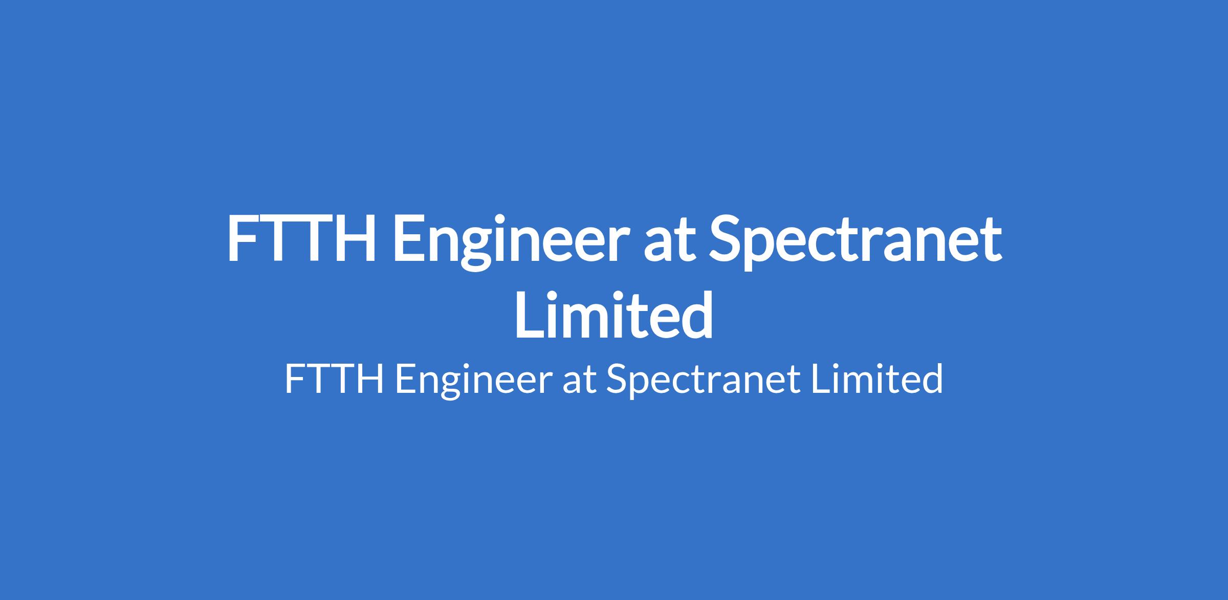 Spectranet Limited is recruiting to fill the position of: FTTH Engineer. The position is located in Awoyaya, Lagos State. Salary: N200,000 / month. Interested candidates should possess a B.Sc. in Computer Science, Electrical Electronic Engineering or related field with 1- 2 years experience as Field Support Engineer.