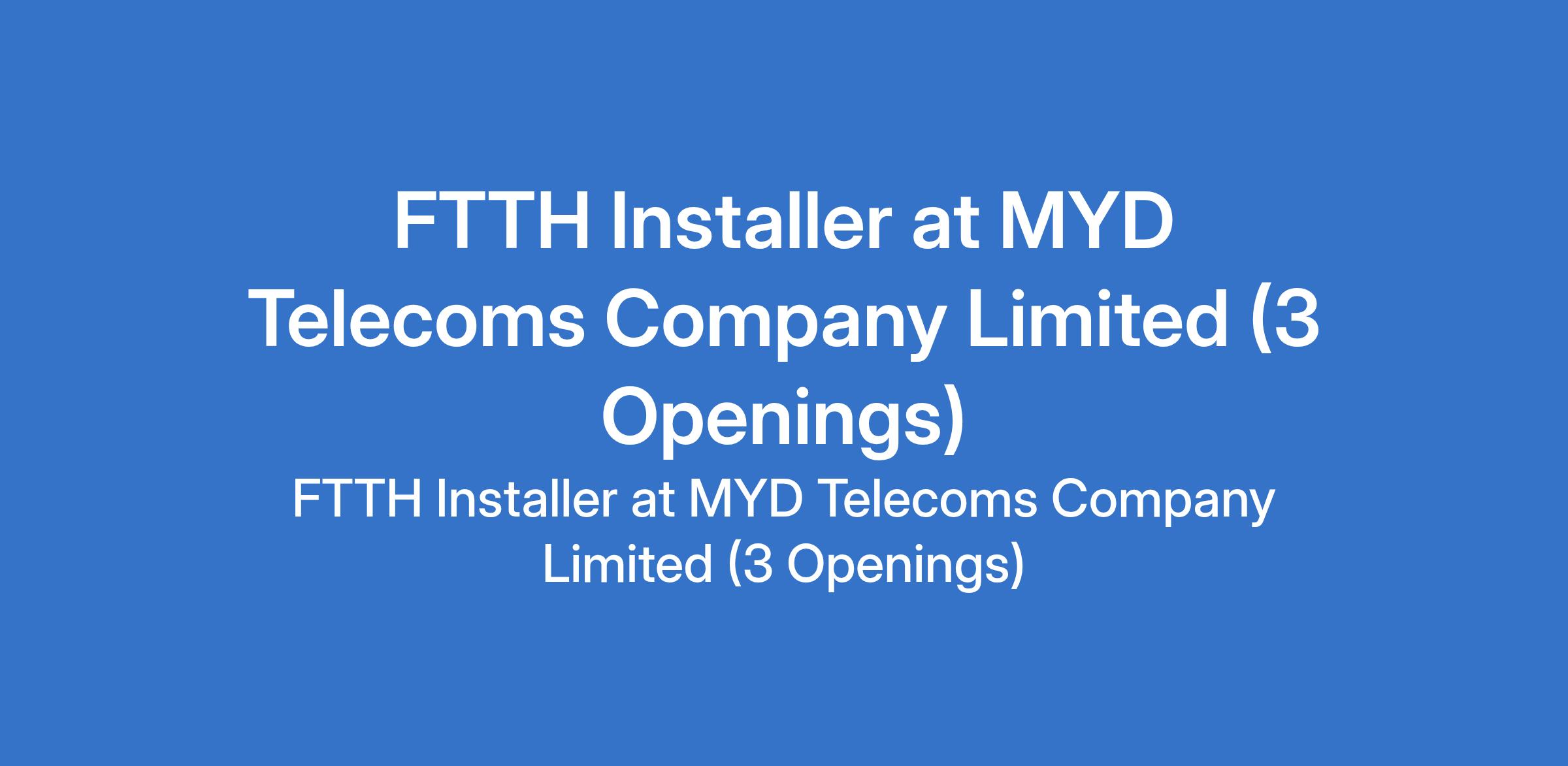 FTTH Installer at MYD Telecoms Company Limited (3 Openings)