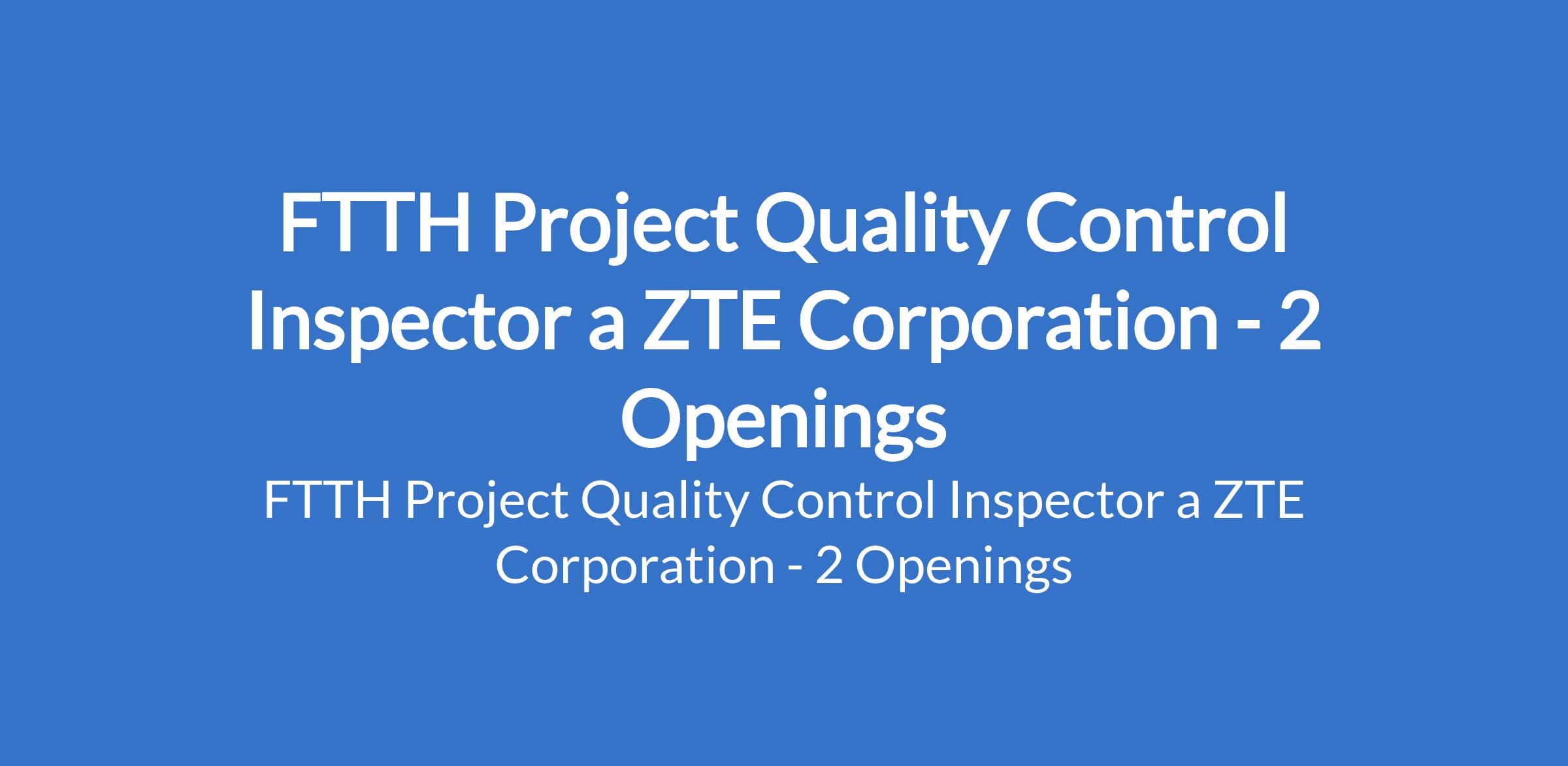 ZTE Corporation is recruiting to fill the position of: FTTH Project Quality Control Inspector. The position is located in Delta and Rivers States. Interested candidates should possess a Bachelors Degree in Civil Engineering, Construction Engineering, or Telecommunications Engineering.