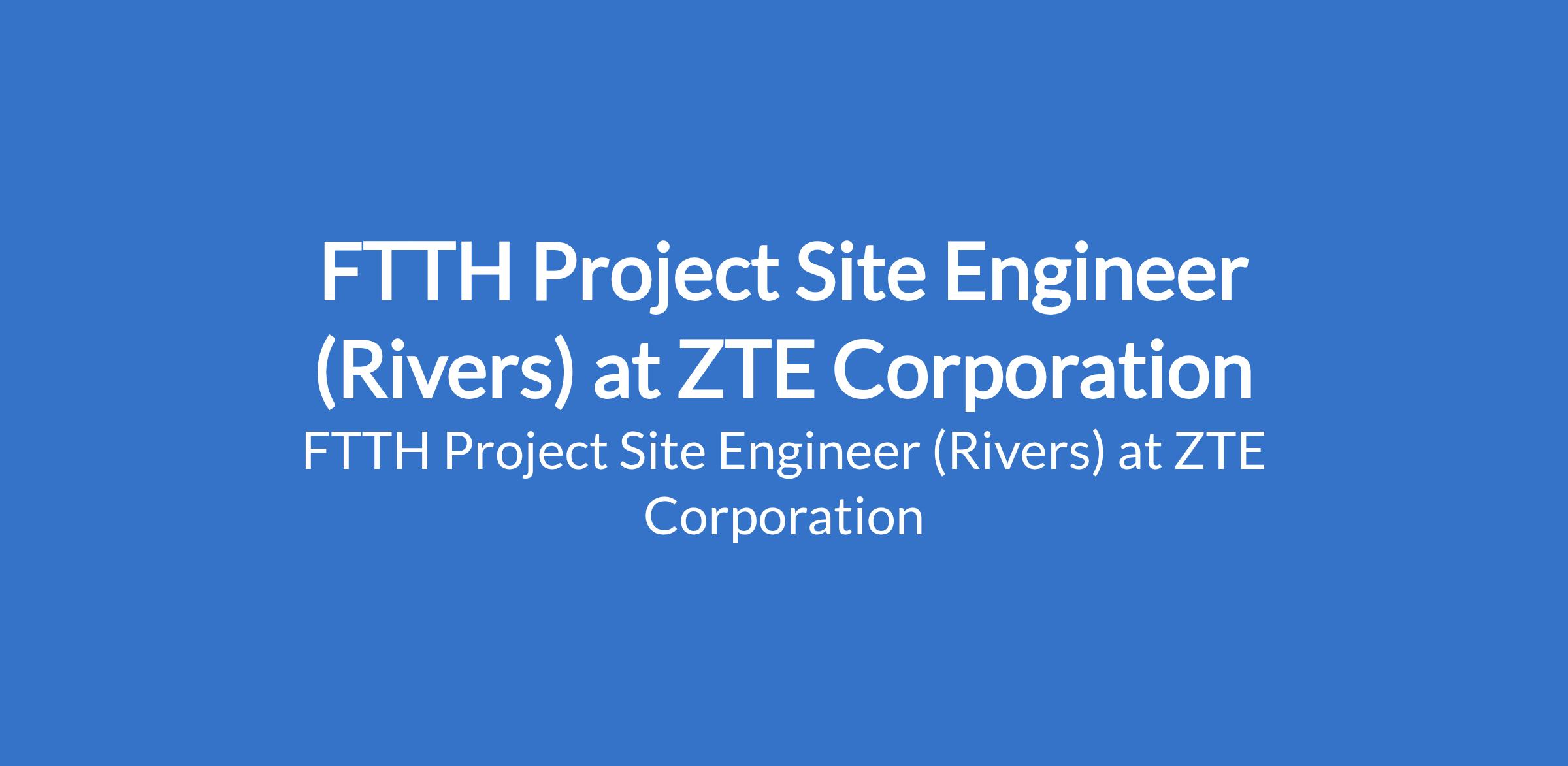 ZTE Corporation is recruiting to fill the position of: FTTH Project Site Engineer. The position is located in Rivers State. Interested candidates should possess a Diploma or above in Telecommunications, Electronics, or related fields with a minimum of 1 year of telecom field experience, preferably in FTTH/FTTX projects.