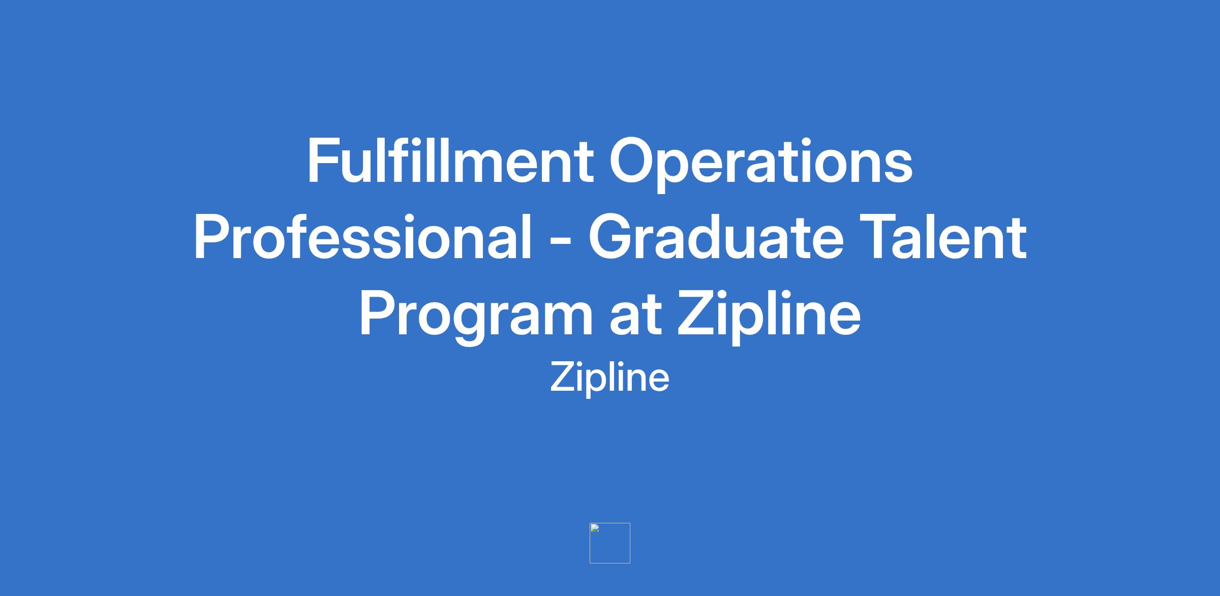 Fulfillment Operations Professional - Graduate Talent Program at Zipline