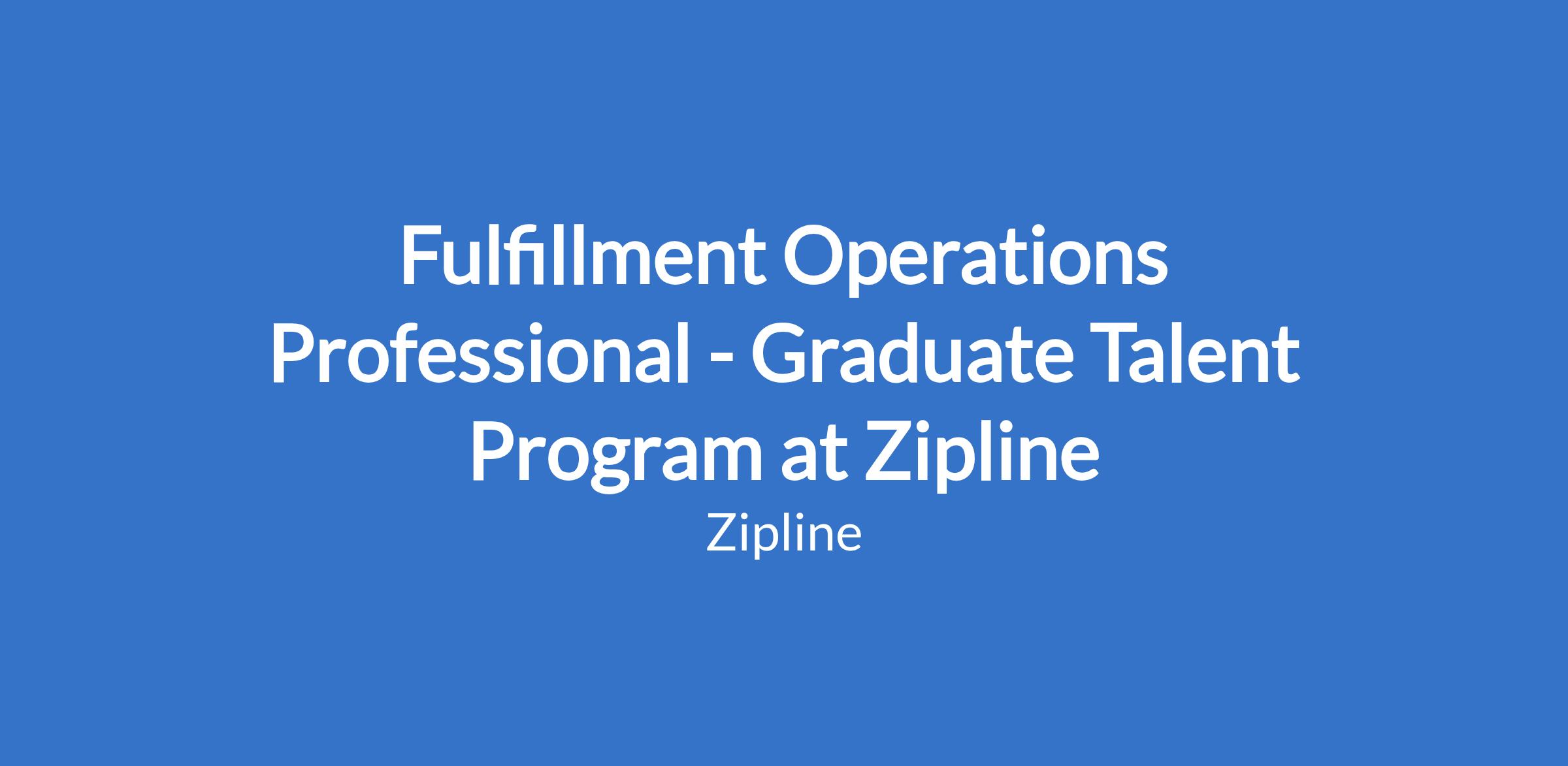 Fulfillment Operations Professional - Graduate Talent Program at Zipline