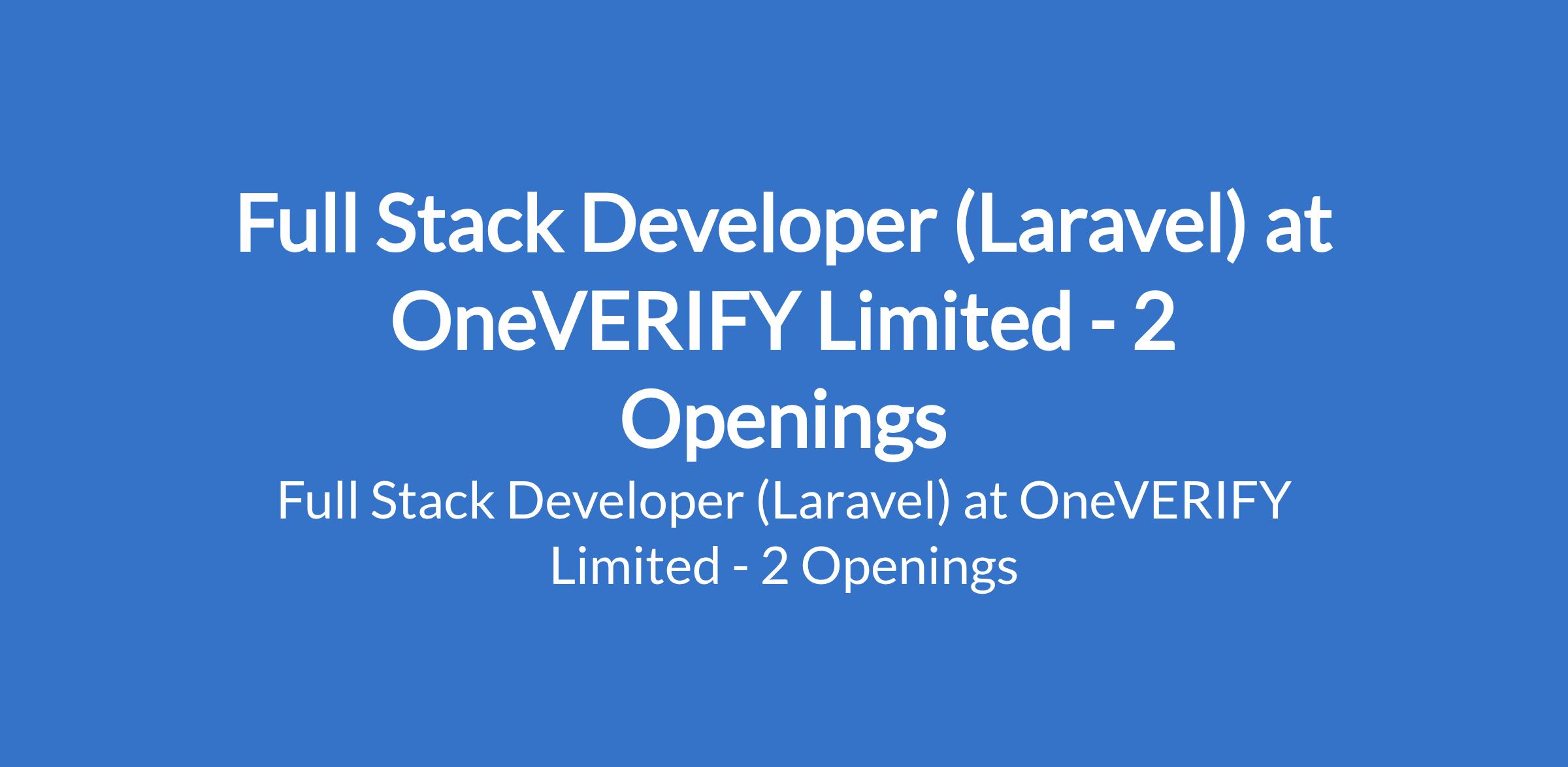 Full Stack Developer (Laravel) at OneVERIFY Limited - 2 Openings