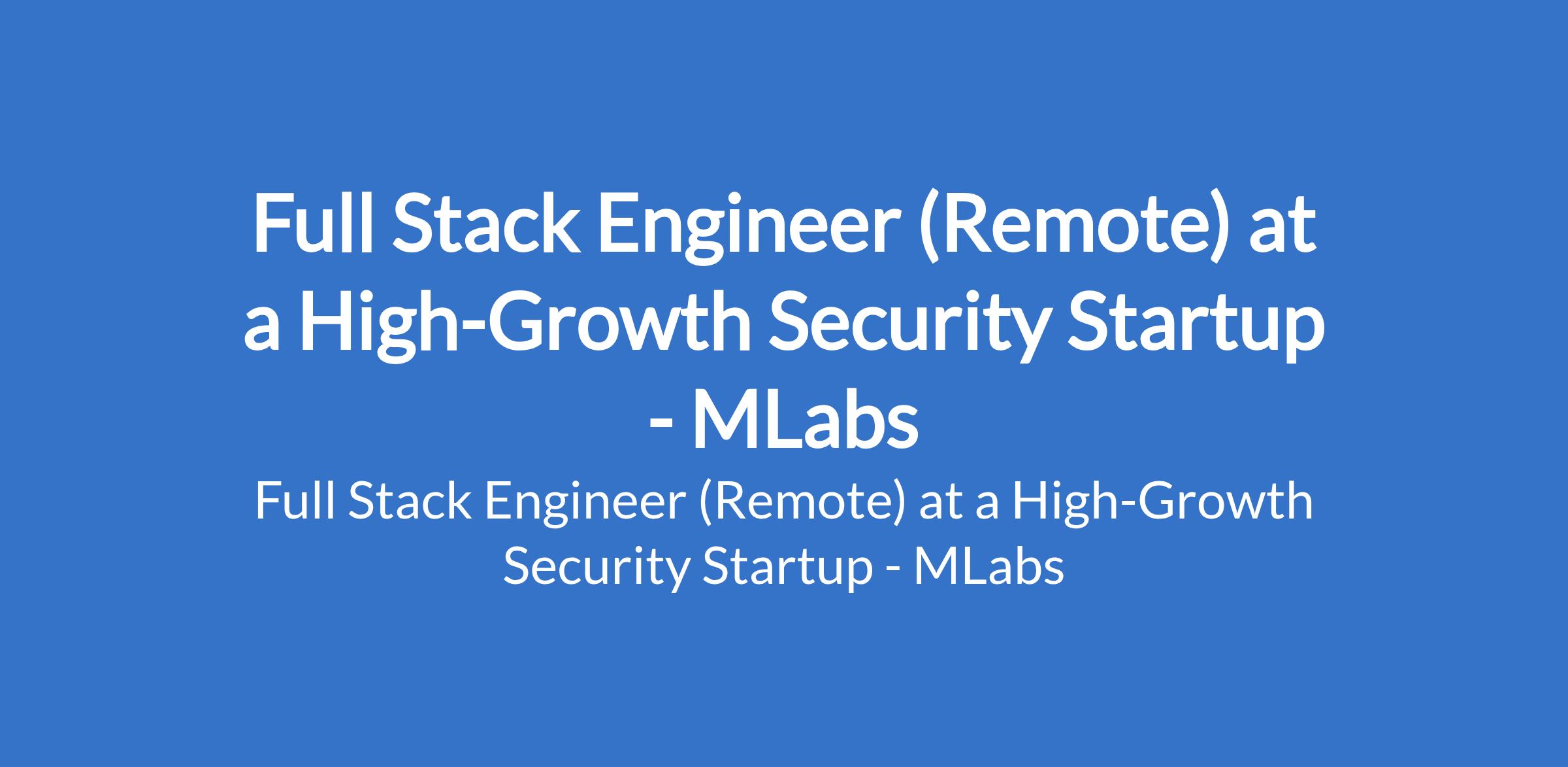 MLabs - Our client, a high-growth security startup is recruiting to fill the position of: Full Stack Engineer. This is a Remote Job. Interested candidates should possess relevant qualifications with a Deep proficiency in React.js, Node.js, and TypeScript.