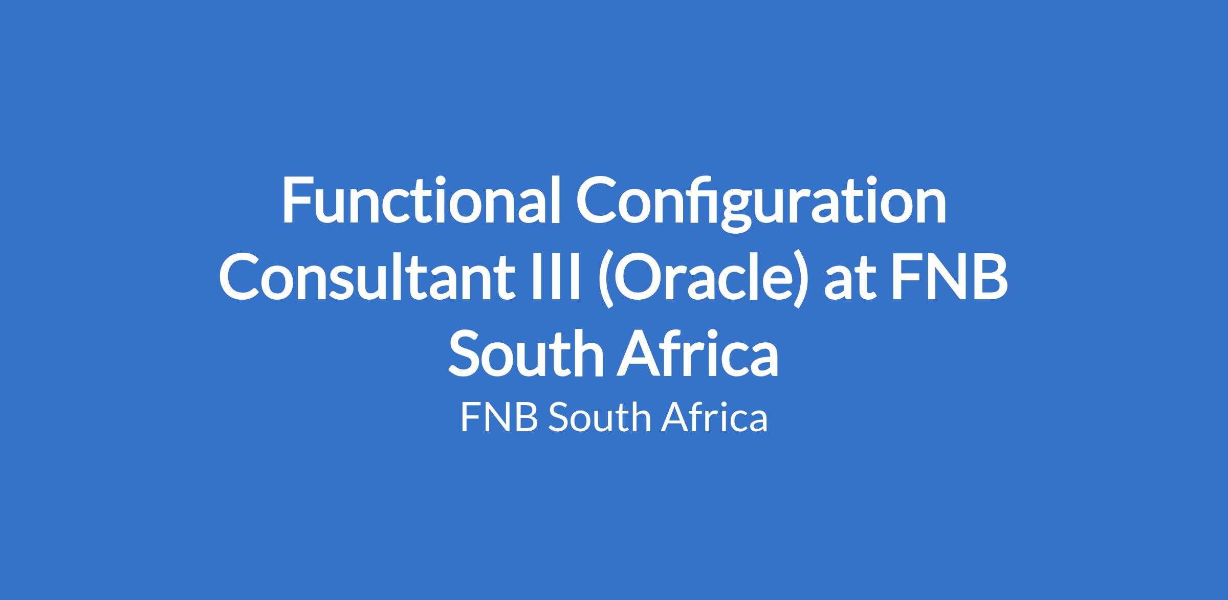 Functional Configuration Consultant III (Oracle) at FNB South Africa