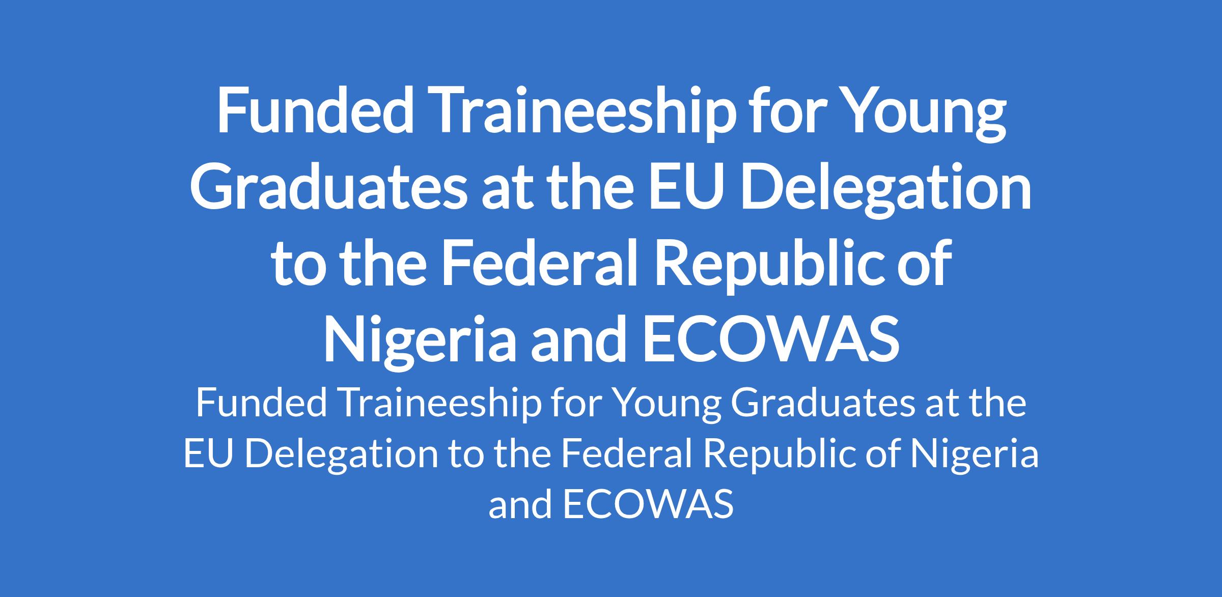 The European Union (EU) Delegation to Nigeria invites applications from suitably qualified candidates for the 2026 Funded Traineeships for Young Graduates. The program is a 6 months traineeship within the Political, Press and Information Section (PPI) Section of the EU Delegation to Nigeria. Interest candidates should be Citizens of Nigeria and Young graduates with at least a Bachelor Diploma (or equivalent) with less than one year of professional experience after their graduation by the signing of the Traineeship agreement.