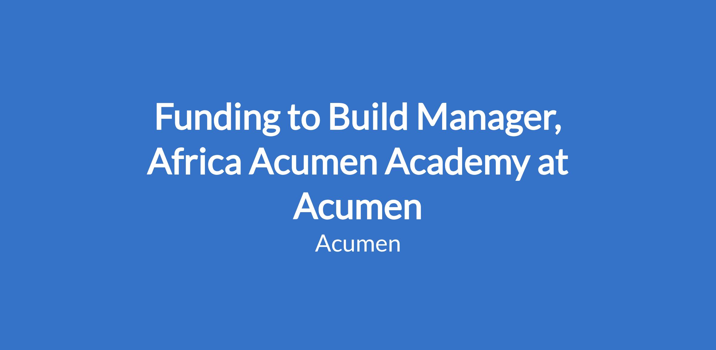 Funding to Build Manager, Africa Acumen Academy at Acumen