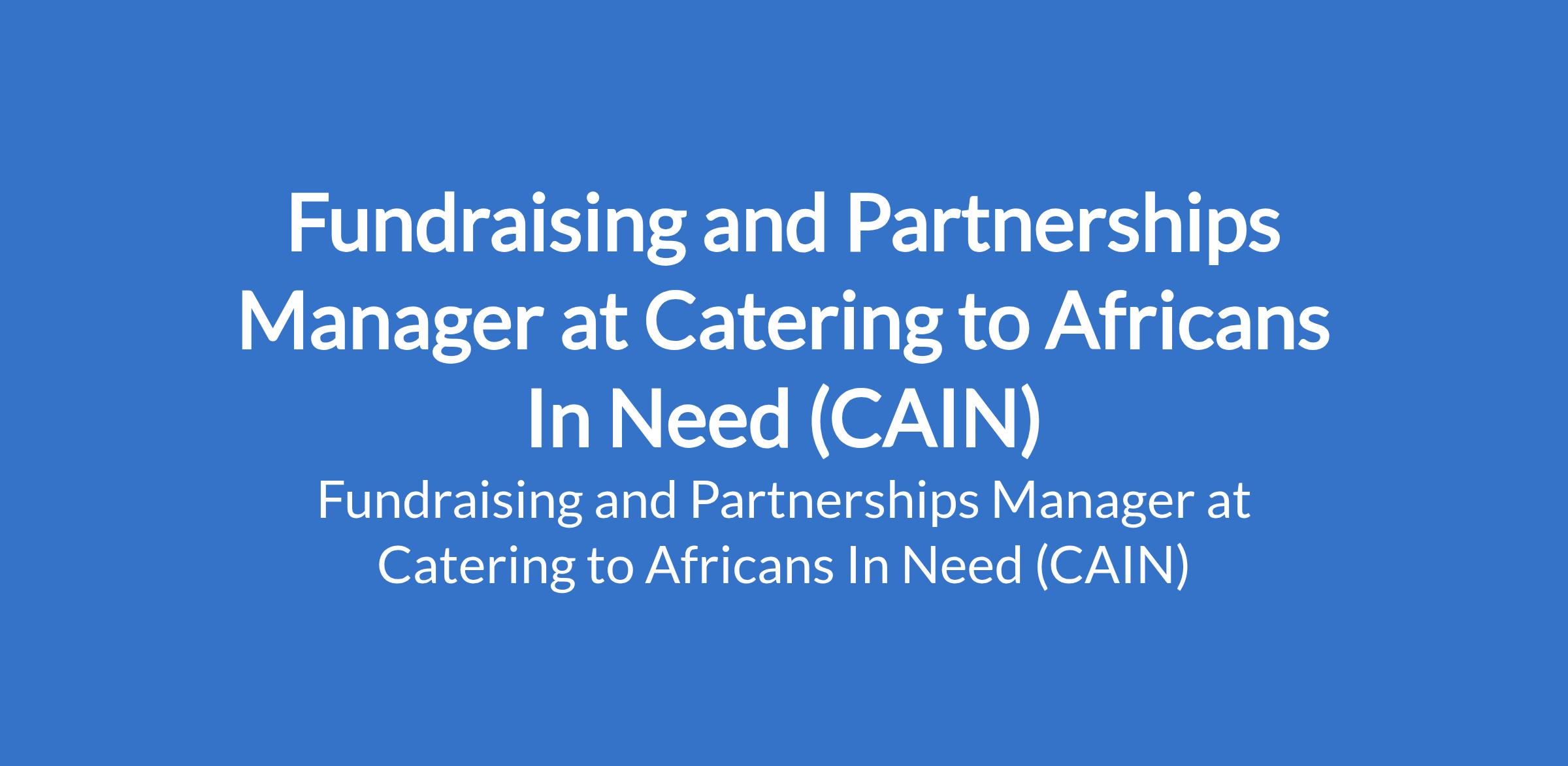 Catering to Africans In Need (CAIN) is recruiting to fill the position of: Fundraising and Partnerships Manager. The position is located in Lagos State. Interested candidates should possess a Bachelors Degree in a relevant field with 3+ years of experience in nonprofit fundraising, development, or donor relations.