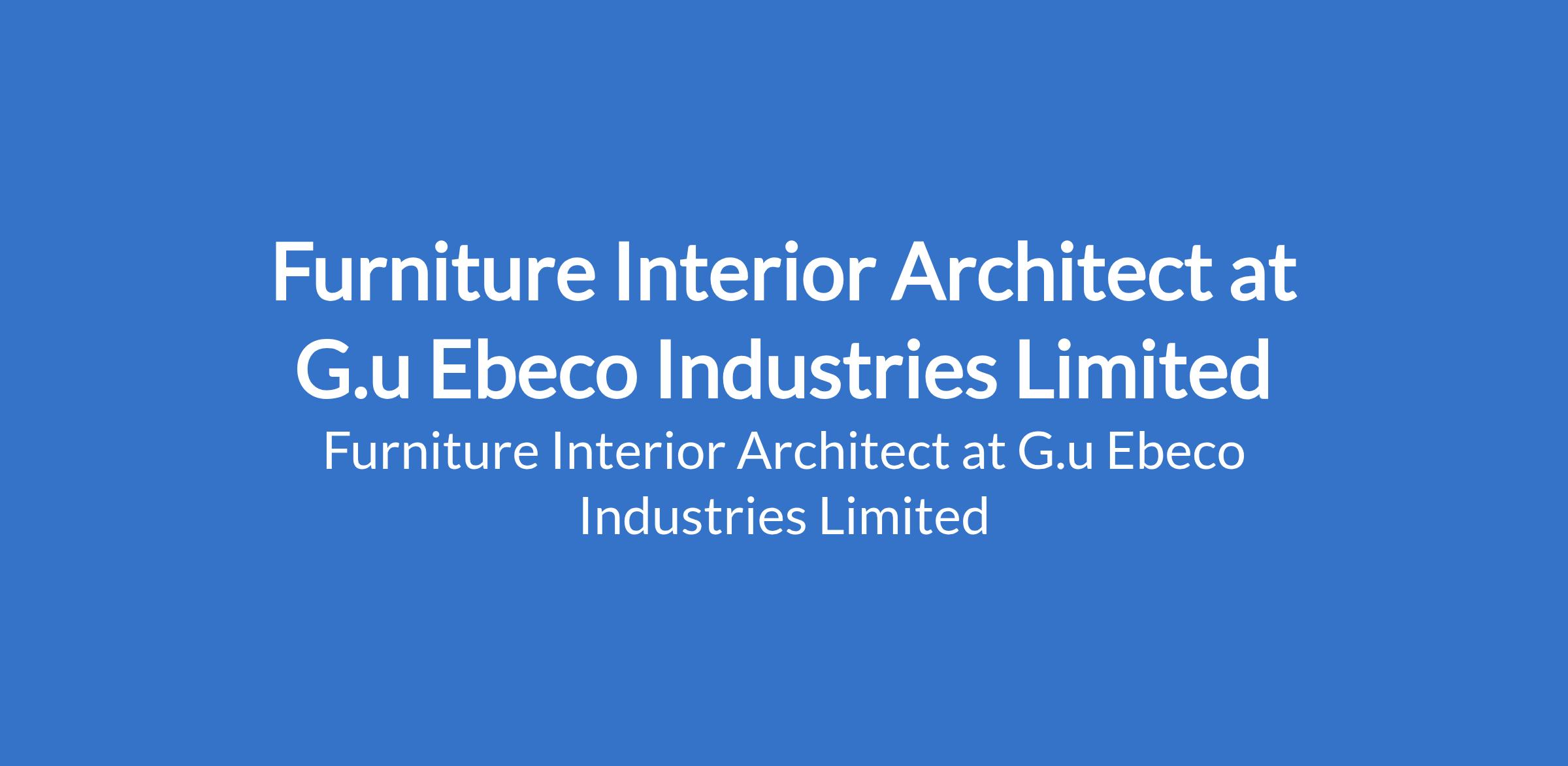 G.u Ebeco Industries Limited is recruiting to fill the position of: Furniture Interior Architect. The position is located in Abuja (FCT). Salary: N250,000 per month. Interested candidates should possess a Degree in Interior Architecture/Design or related field with a minimum of 4 years experience.