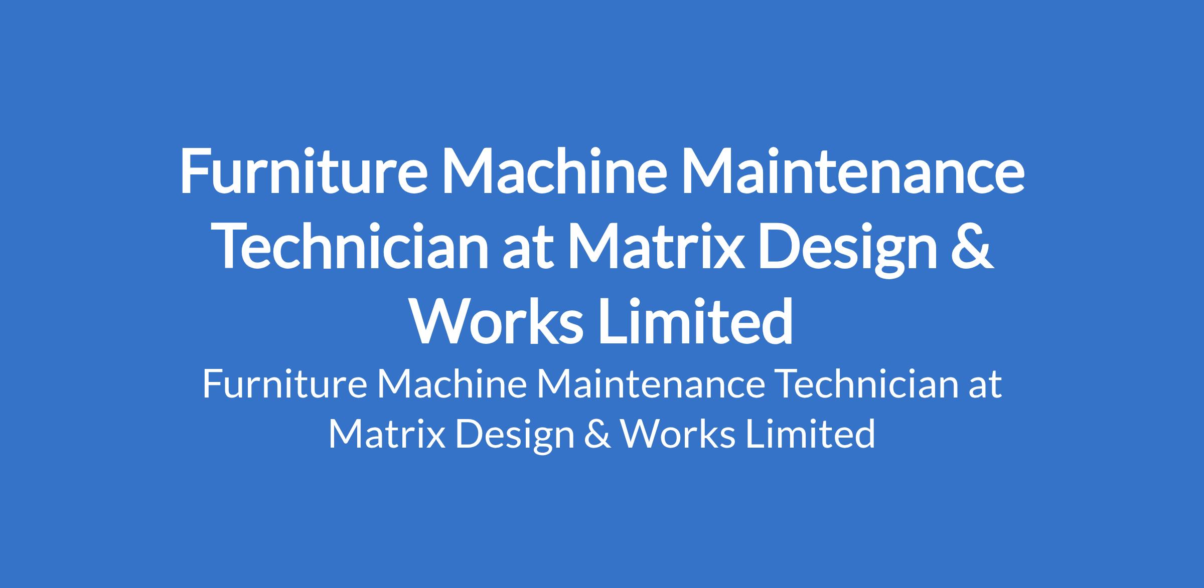 Matrix Design & Works is recruiting to fill the position of: Furniture Machine Maintenance Technician. The position is located in Sangotedo Ajah, Lagos State. Interested candidates should possess a relevant qualification with 3+ years experience with furniture production machines.