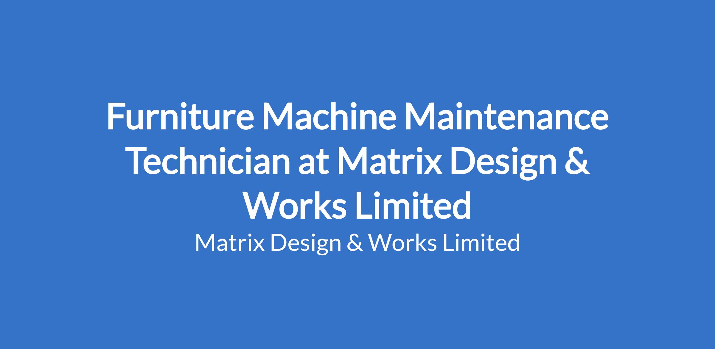 Furniture Machine Maintenance Technician at Matrix Design & Works Limited