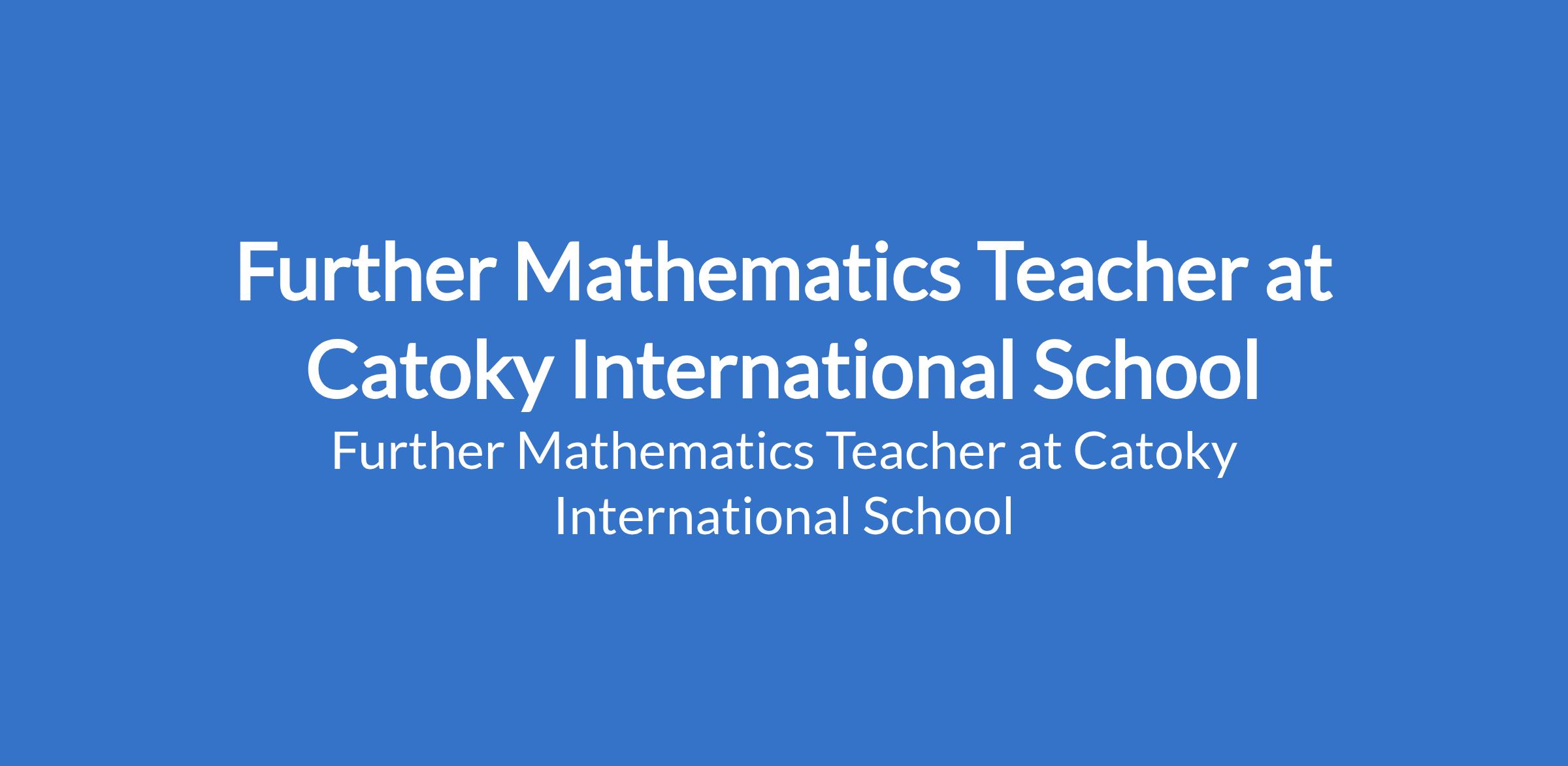 Catoky International School is recruiting to fill the position of: Further Mathematics Teacher. The position is located in Port Harcourt, Rivers State. Interested candidates should possess relevant qualifications with a minimum of 3 years teaching experience and must reside in Port Harcourt around GRA, Ada George, DLine, Ikwerre, Road, Mile 4, Mile 3 or Waterline.