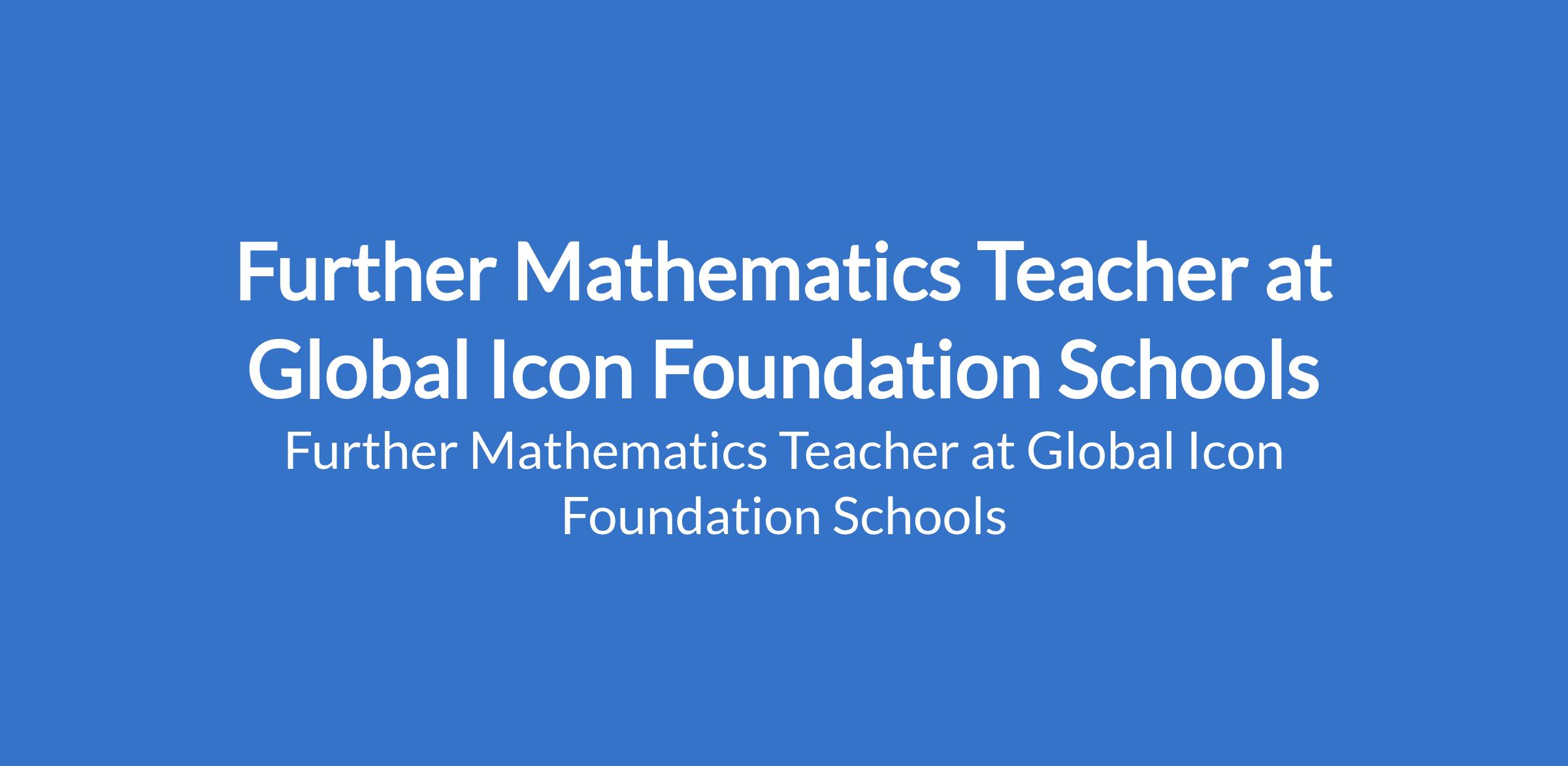 Further Mathematics Teacher at Global Icon Foundation Schools