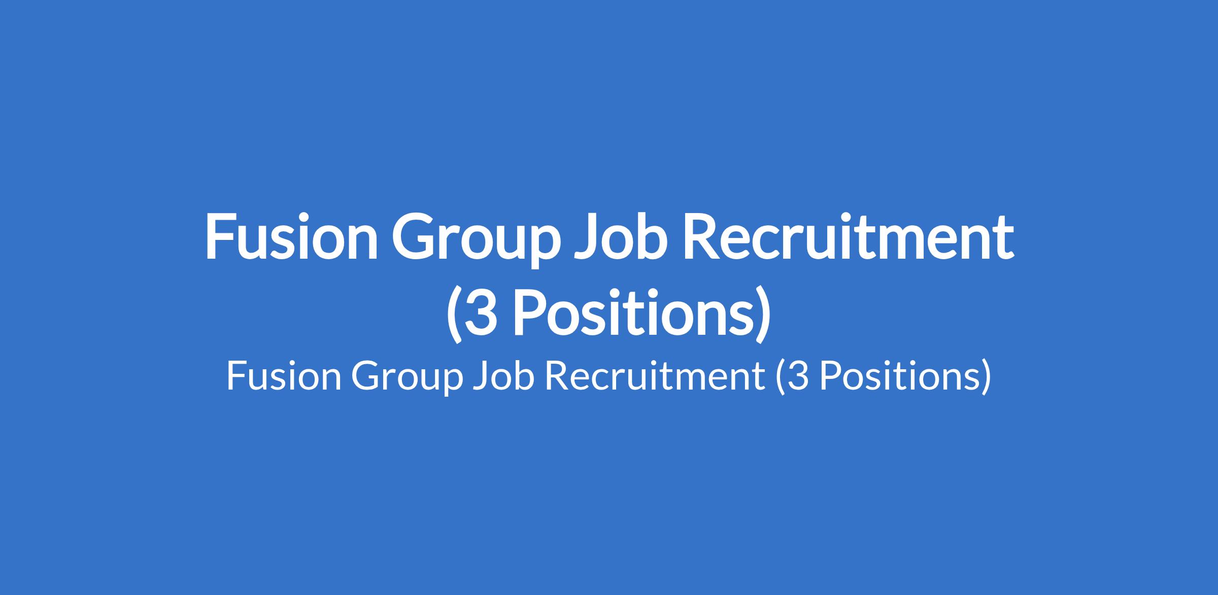 Fusion Group Job Recruitment (3 Positions)