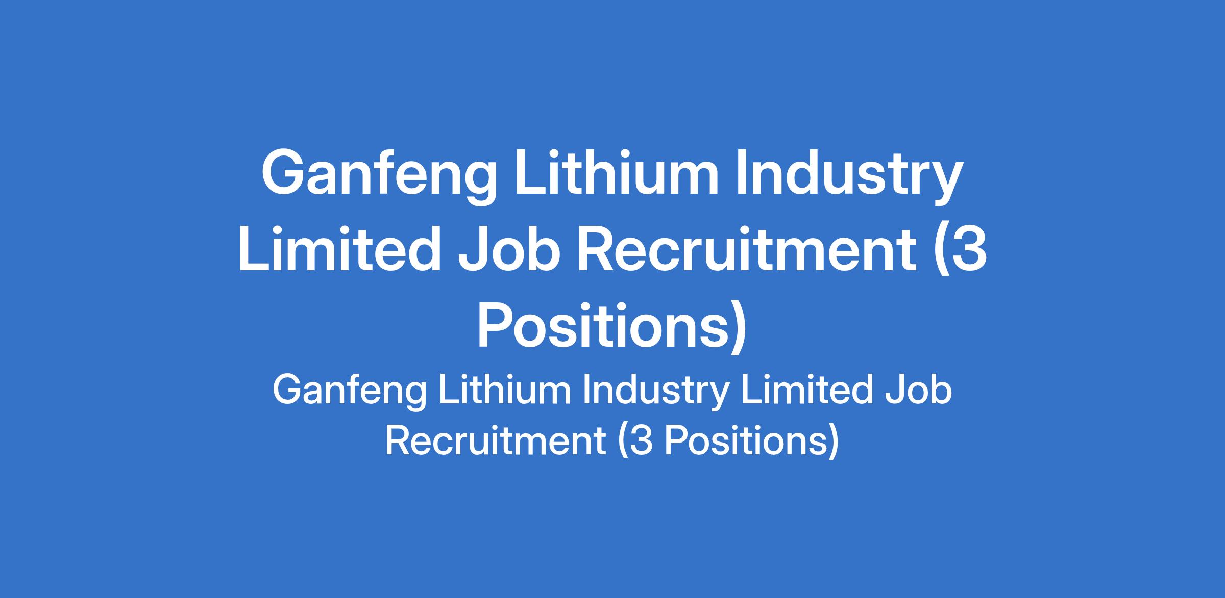 Ganfeng Lithium Industry Limited Job Recruitment (3 Positions)