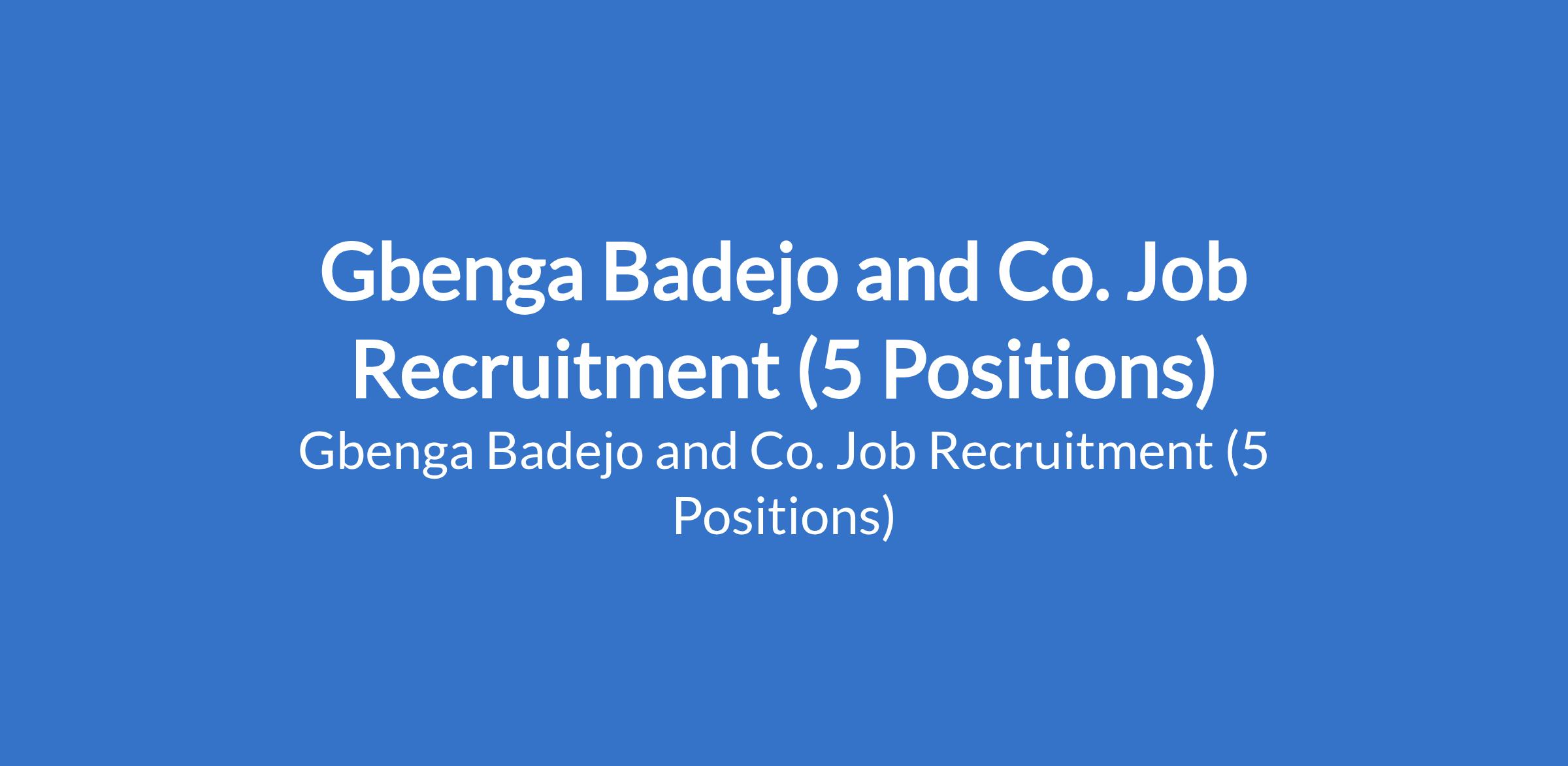Gbenga Badejo and Co. - Our clients in various sectors are currently recruiting suitably qualified candidates to fill the following positions in Lagos State: Internal Control / Compliance Officer, Accountant, Compliance Officer, Business Development Manager, and Business Development Officer.