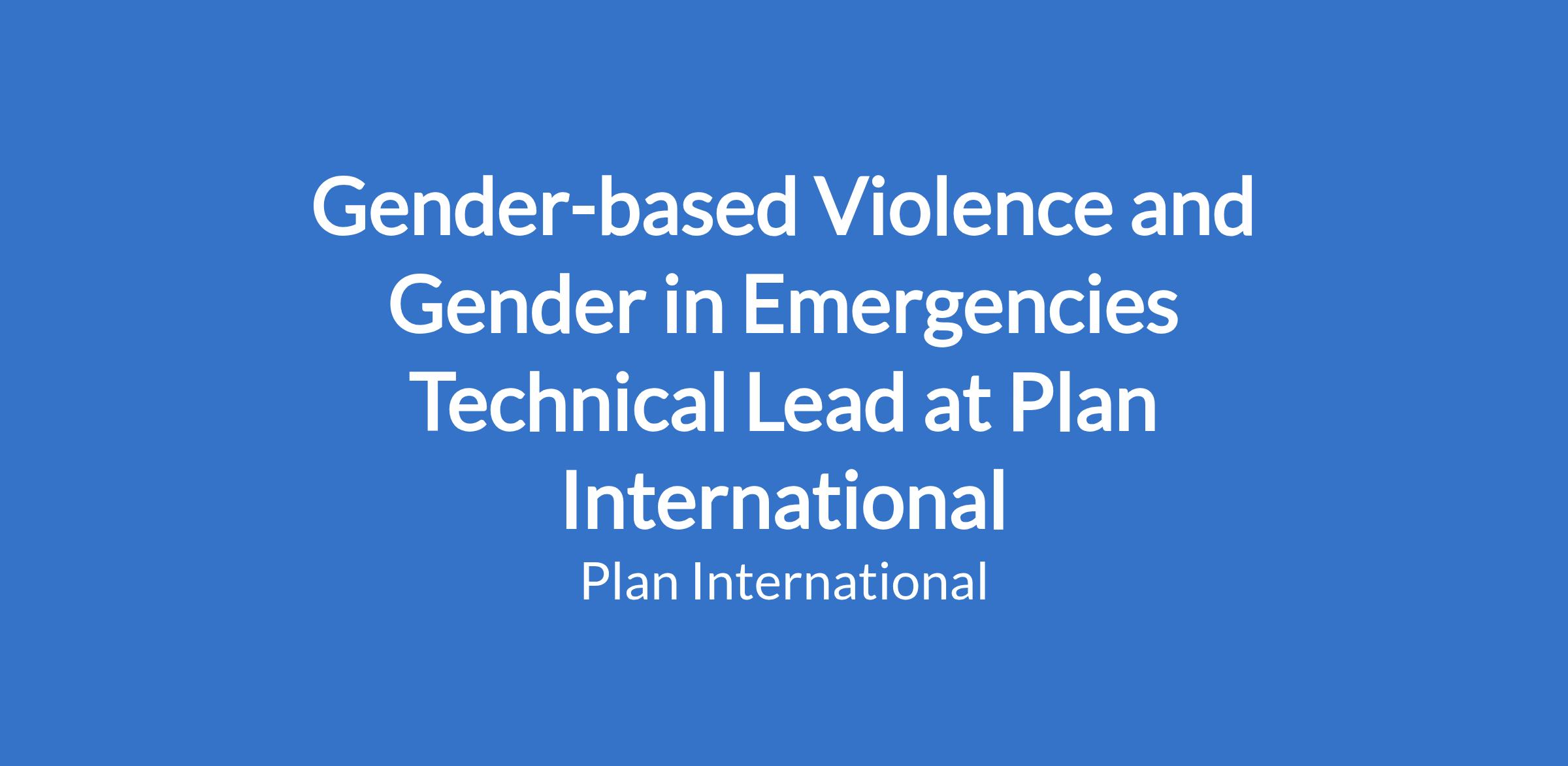 Gender-based Violence and Gender in Emergencies Technical Lead at Plan International