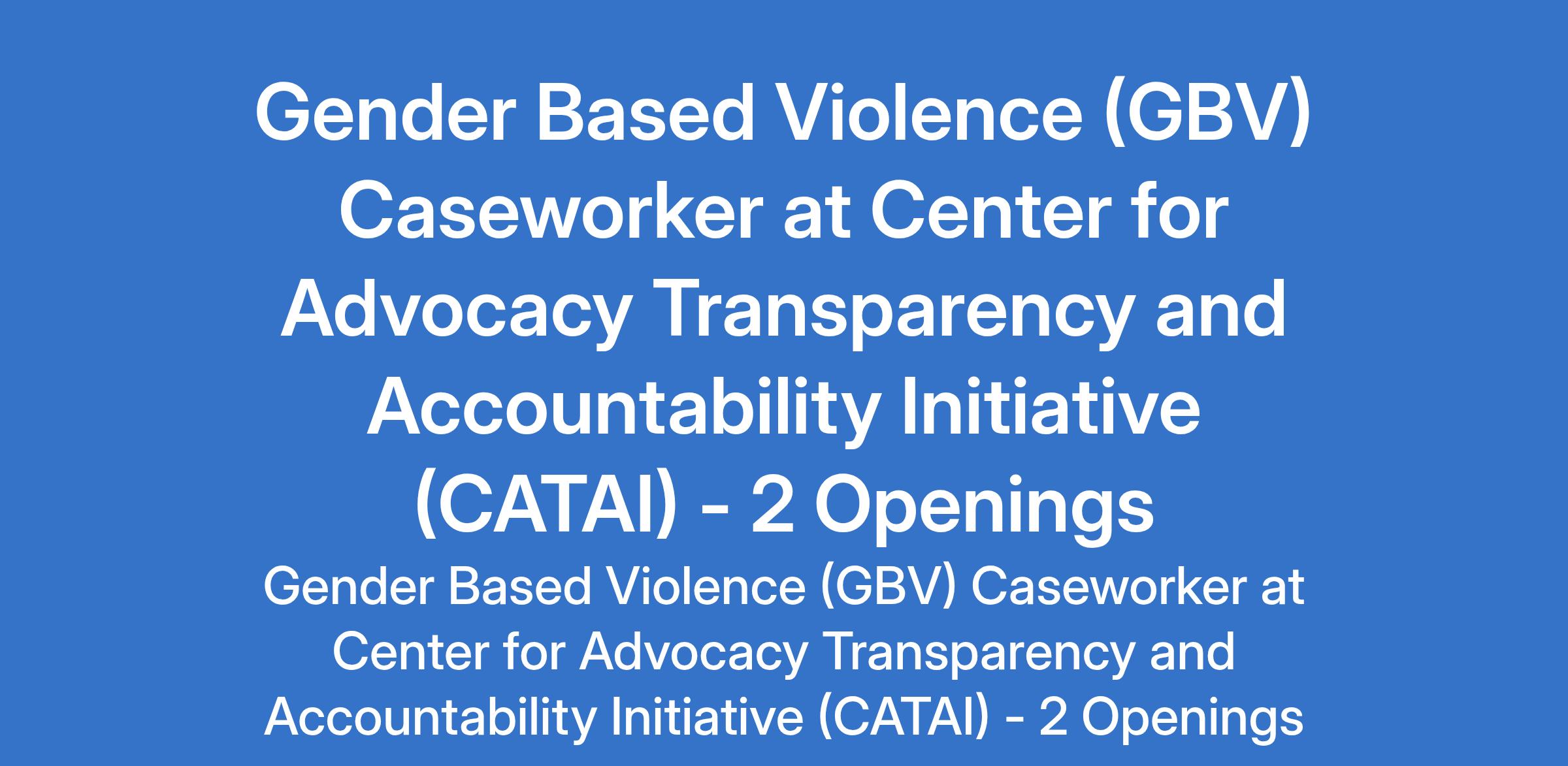 Center for Advocacy Transparency and Accountability Initiative (CATAI) is recruiting to fill the position of: Gender Based Violence (GBV) Caseworker. The position is located in Madagali, Adamawa State. Interested candidates should possess a Bachelors Degree in Social Work, Development Studies, Humanitarian Affairs, Gender Studies, or related fields with 34 years experience in humanitarian settings, including at least 2 years of direct GBV case management using survivor-centered and multi-sectoral approaches.