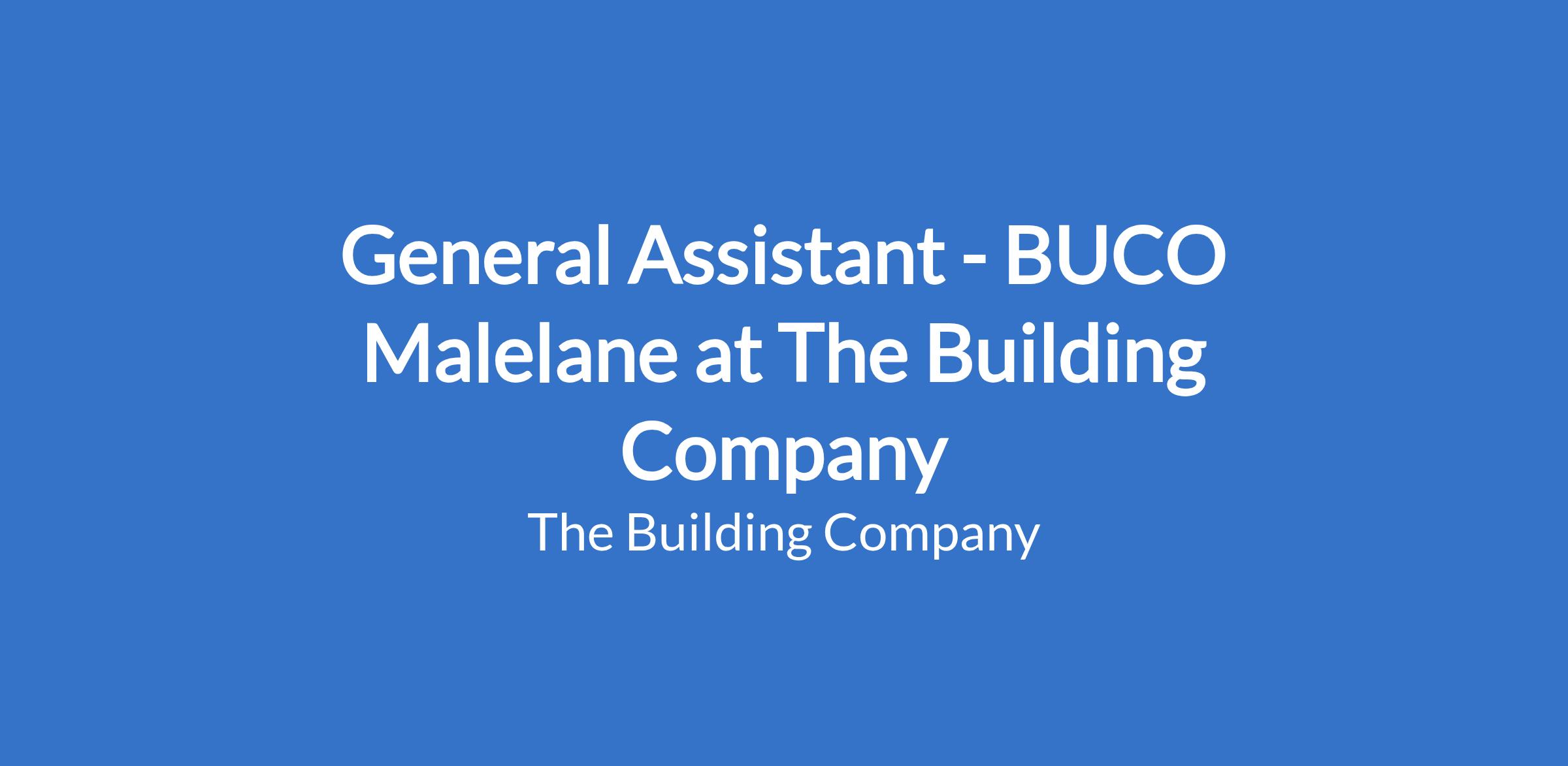 General Assistant - BUCO Malelane at The Building Company