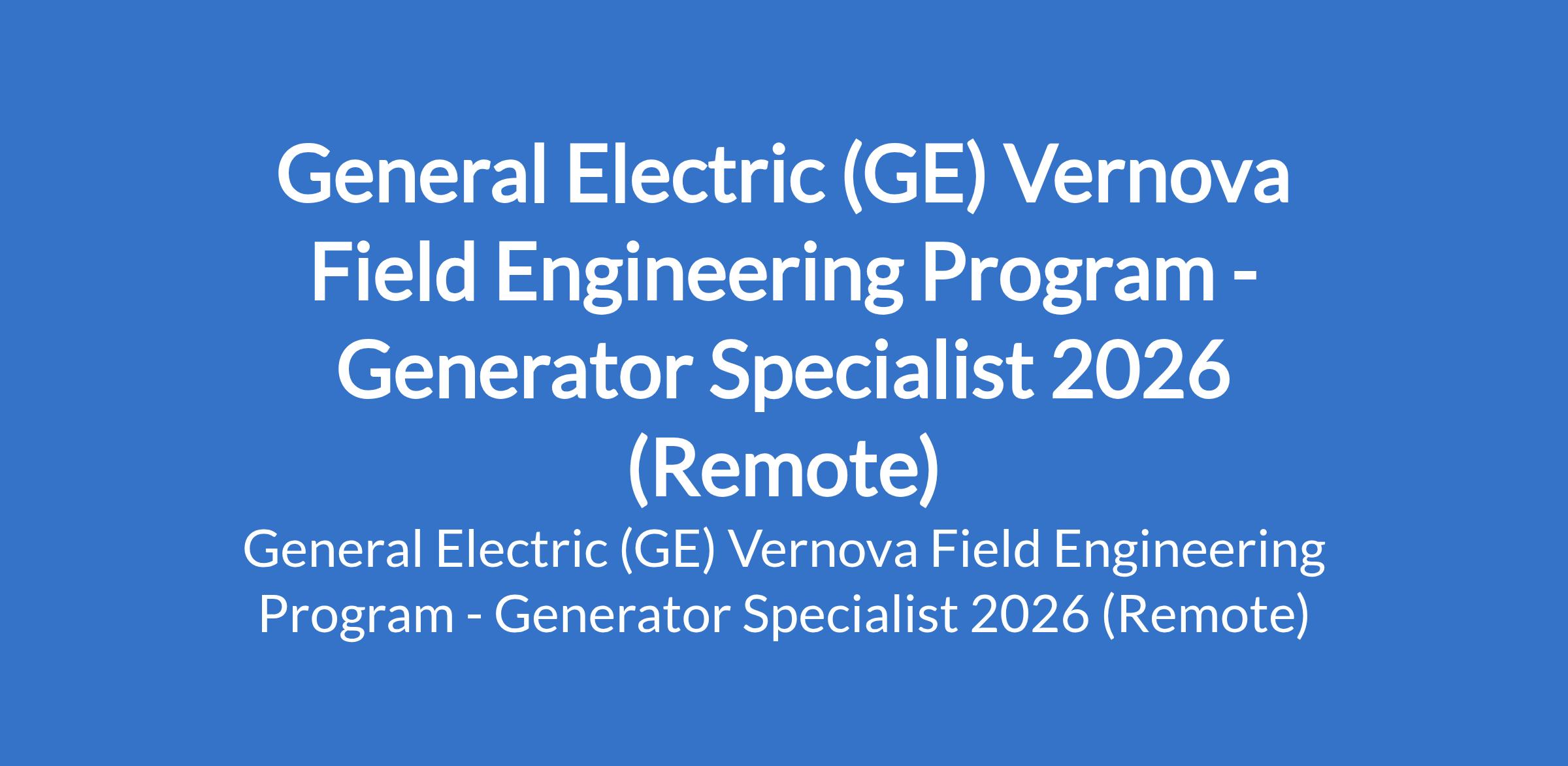 General Electric (GE) Vernova, a subsidiary of General Electric invites applications for its Field Engineering Program - Generator Specialist. This is an entry-level position. Interested candidates should possess a Technical/University Degree or qualifying experience OR a High School Diploma / GED with a minimum of 4 years of experience in a Field Services role.