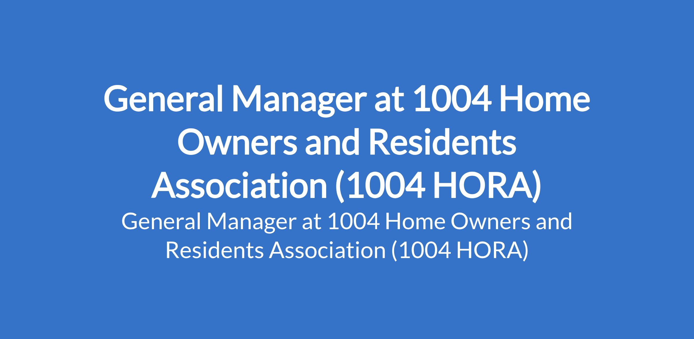 The 1004 Home Owners and Residents Association (1004 HORA) - 1004 Estate Management Office is recruiting to fill the position of: General Manager. The position is located in Victoria Island, Lagos State. Interested candidates should possess a Bachelor's Degree in Facilities Management, Engineering, Estate Management, or a related field with a minimum of at least 10 years of managerial experience in facility / general management roles in a similar setting.