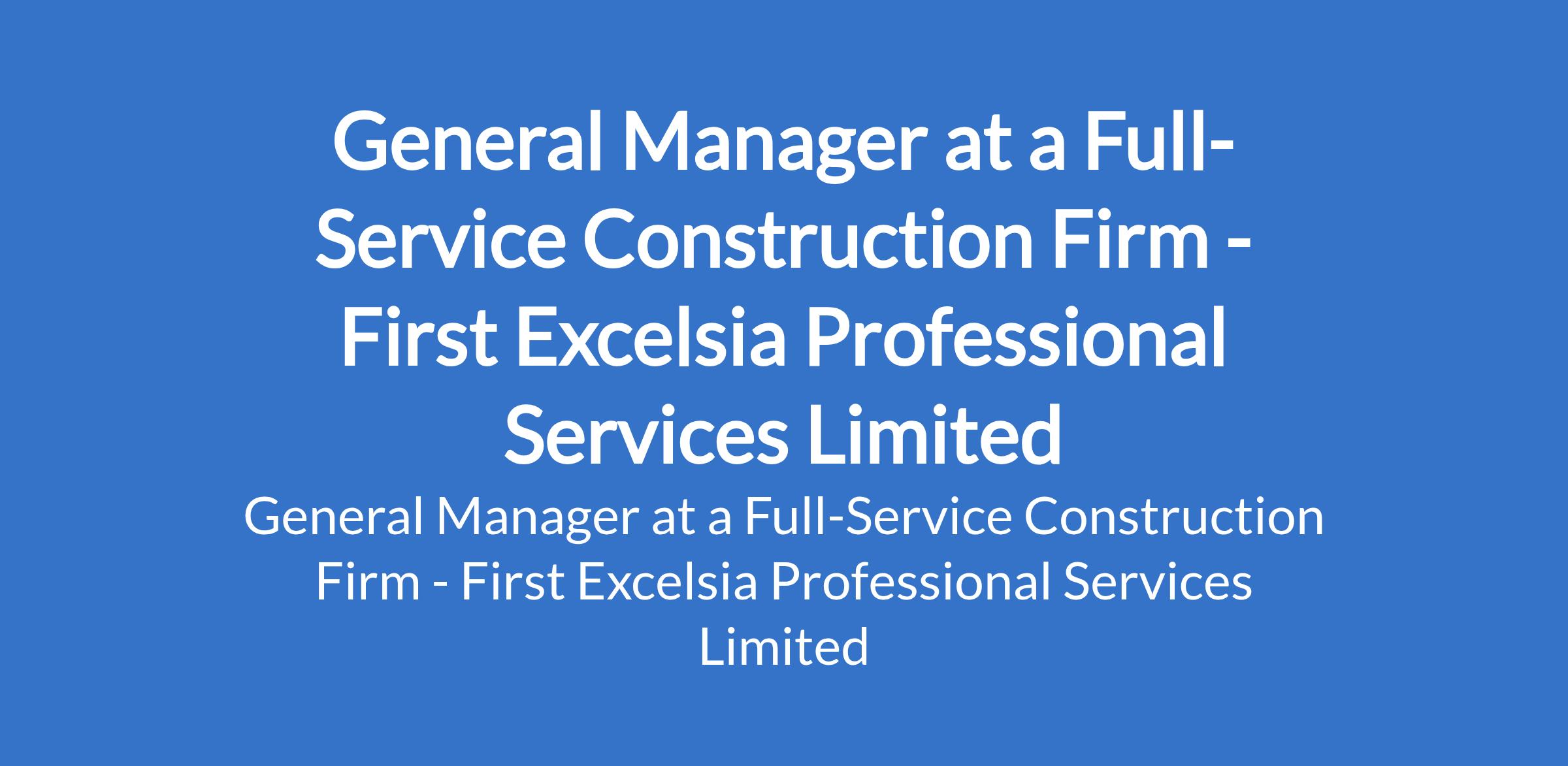 First Excelsia Professional Services Limited - Our client, a full-service Construction firm is recruiting to fill the position of: General Manager. The position is located in Yaba, Lagos State. Interested candidates should possess a Bachelors Degree in Business Administration, Management or a related field with a minimum of 10 years experience in a Sales Industry-related role.