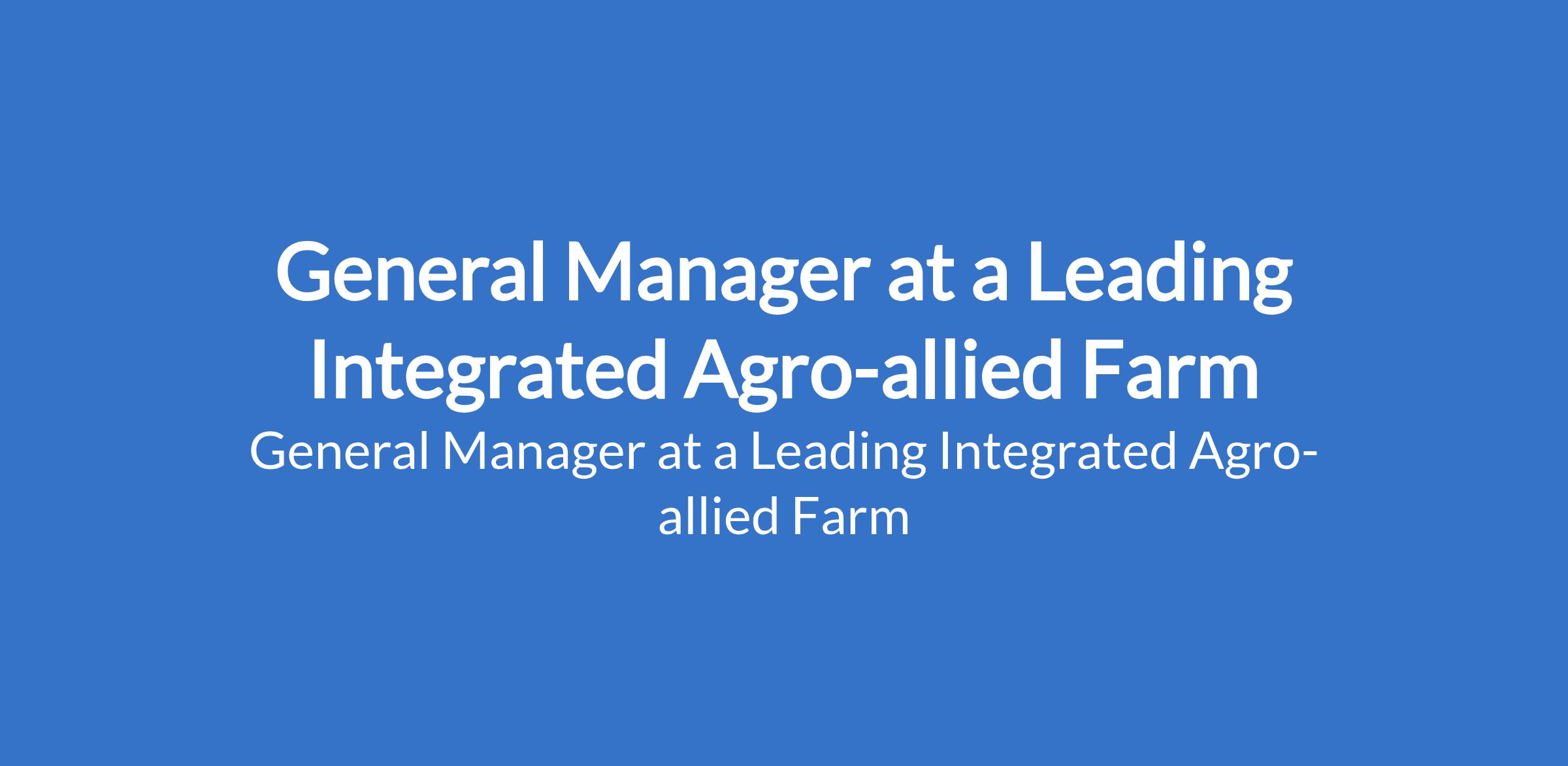 A leading Integrated Agro-allied Farm is recruiting to fill the position of: General Manager. The position is located in Enugu State. Interested candidates should possess a Bachelors Degree in Agriculture, Agribusiness, Animal Science, Crop Science, Agricultural Engineering, or related discipline. (A Masters degree or professional certification is an added advantage.) with a minimum of 3 years experience in a supervisory role within an integrated farm or agro-allied enterprise.