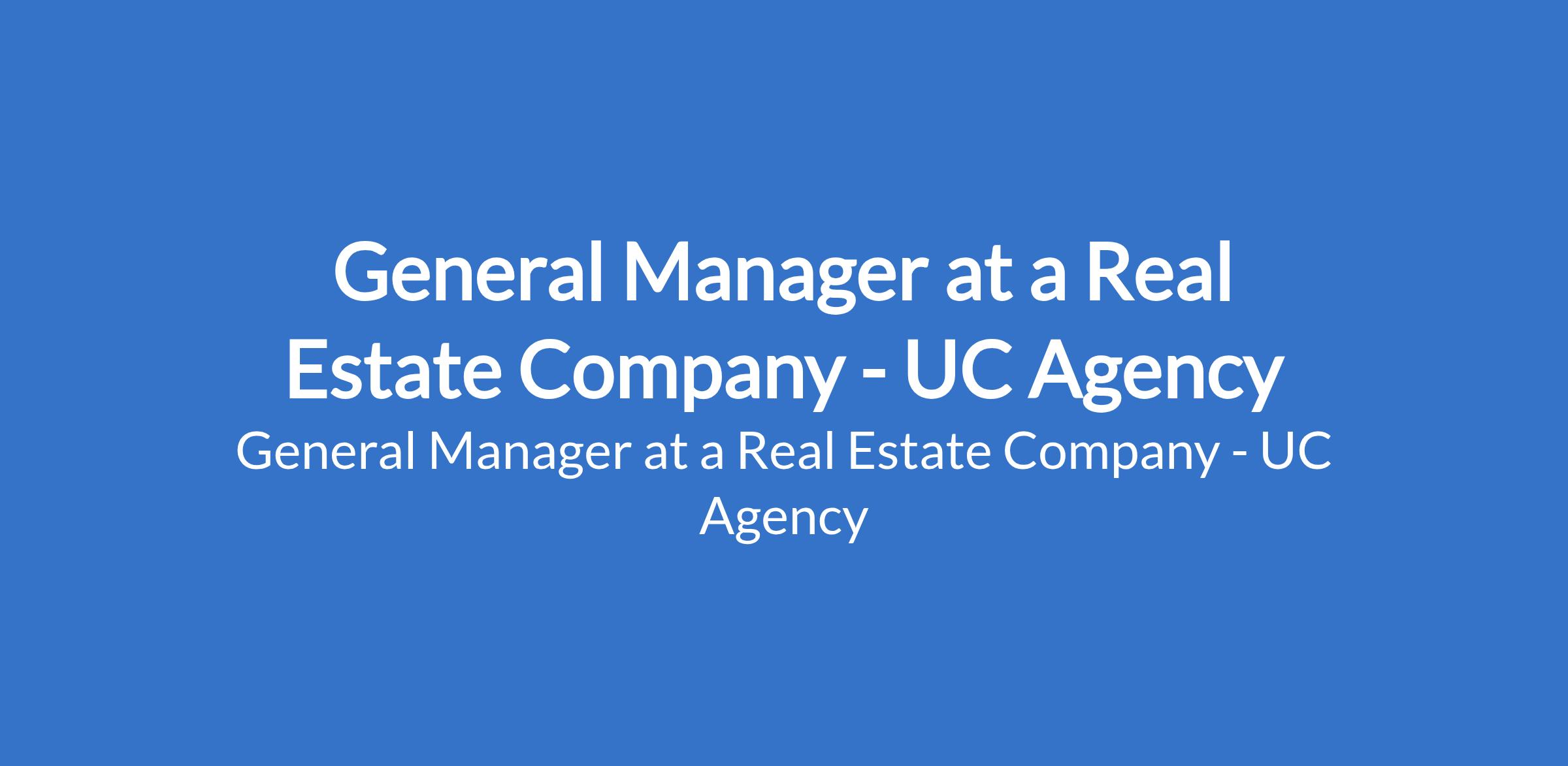 General Manager at a Real Estate Company - UC Agency