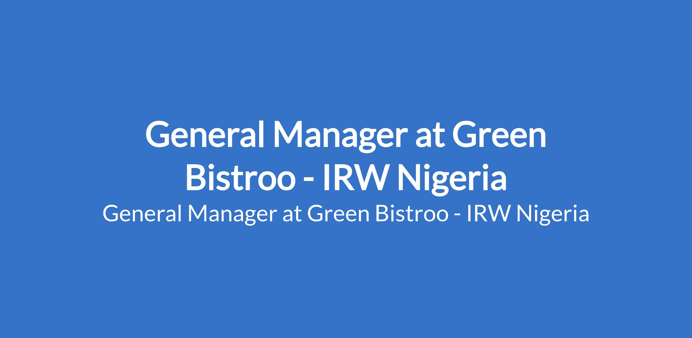 IRW Nigeria - Our client, Green Bistroo is recruiting to fill the position of: General Manager. The position is located in Magodo Phase 2, Lagos State. The successful candidate will act as a key partner to leadership, driving performance, efficiency, and growth across all areas of the business while ensuring alignment with the companys long-term vision. Interested candidates should possess relevant qualifications with proven experience in an operations leadership role (COO, General Manager, or similar), ideally across multiple business units or portfolio companies; experience in media, technology, or related industries is an advantage.