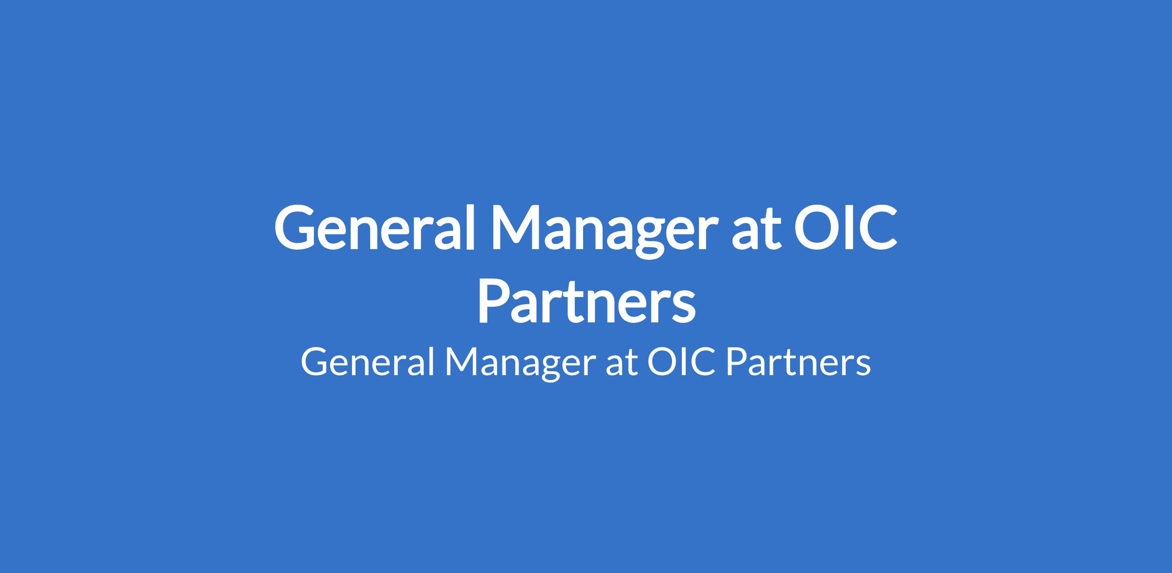 General Manager at OIC Partners