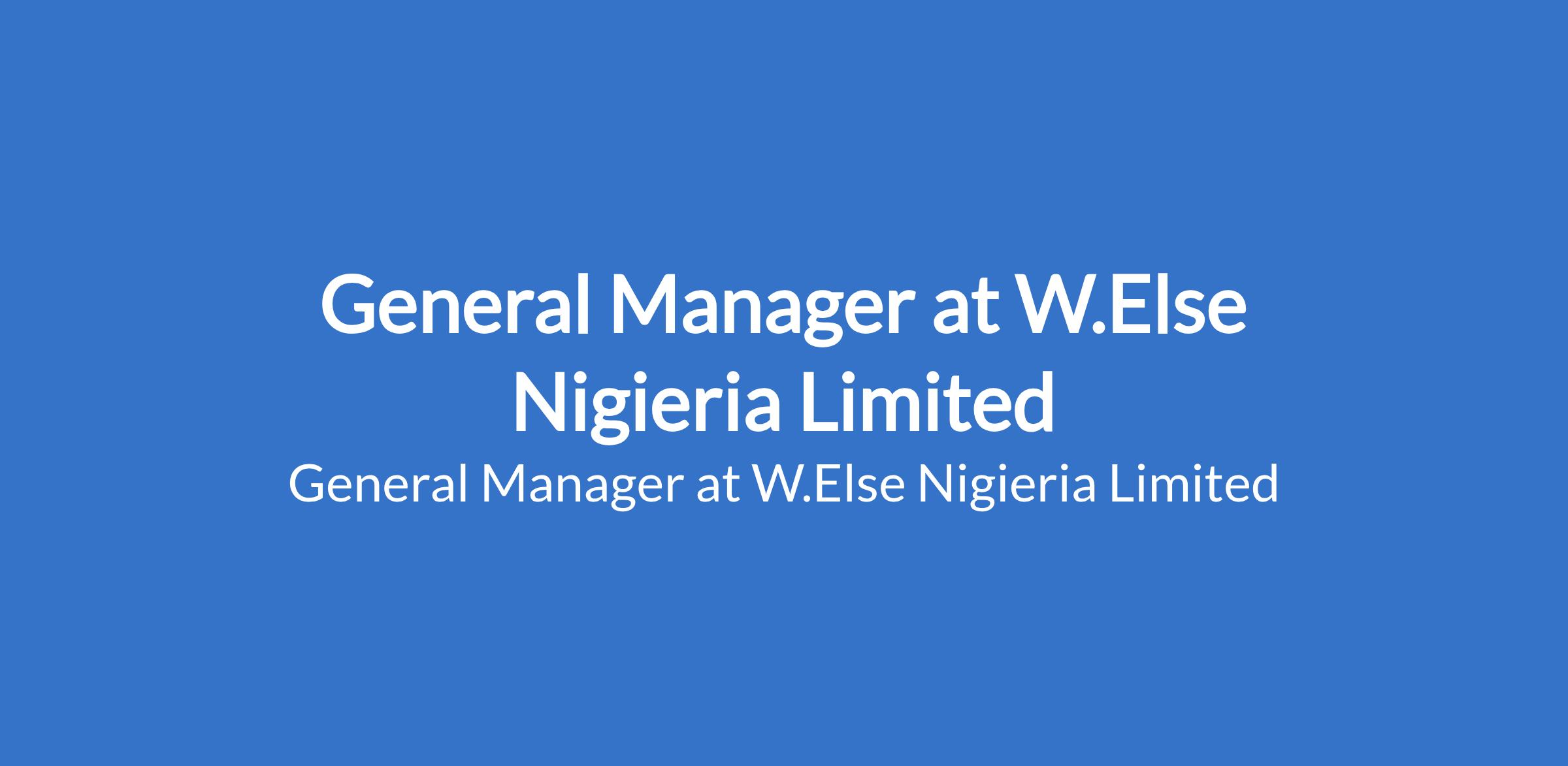 W.Else Nigieria Limited is recruiting to fill the position of: General manager. The position is located in Port Harcourt, Rivers State. Salary: N100,000 - N150,000 per month. Interested candidates should possess a minimum of B.Sc Degree in Hospitality Management, Business Administration, Hotel & Catering Management, Marketing or related fields.