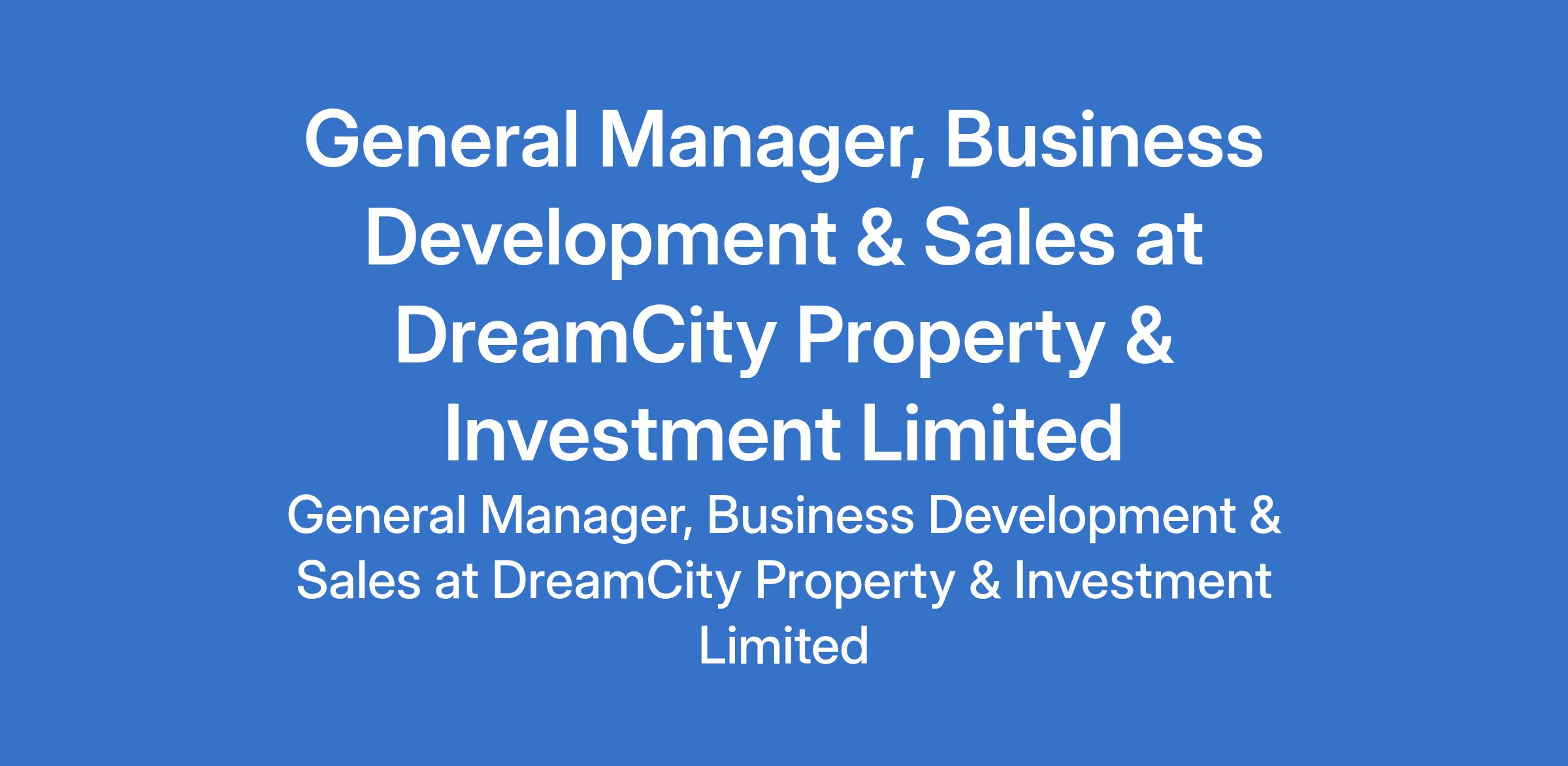 DreamCity Property & Investment Limited is recruiting to fill the position of: General Manager, Business Development & Sales. The position is located in Jabi Abuja (FCT). Interested candidates should possess a Bachelor's Degree in Finance, Real Estate, Business Administration, or related field; MBA or advanced Degree preferred with 10 years of progressive leadership experience in real estate investments, development and banking.