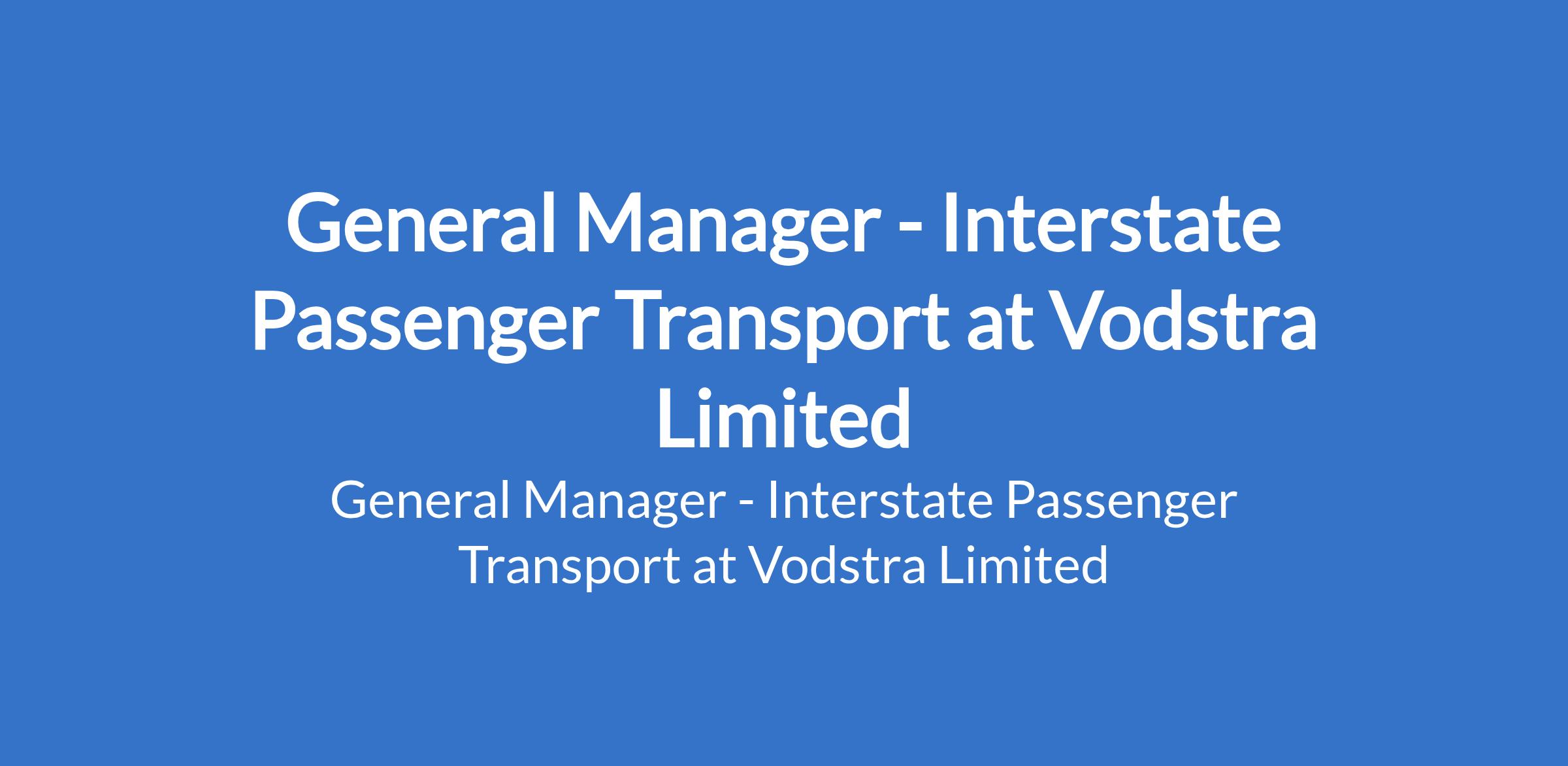 Vodstra Limited - Our client, a major interstate passenger transport operator in Nigeria is recruiting to fill the position of: General Manager - Interstate Passenger Transport. The position is located in Lagos State. Interested candidates should possess relevant qualifications with 10 - 15+ years of progressive leadership experience in large-scale passenger transport operations.