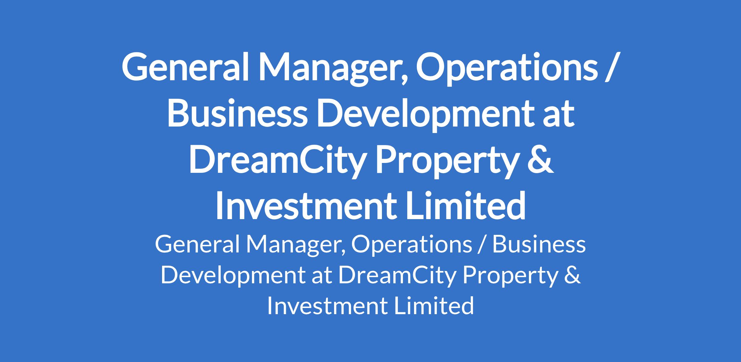 DreamCity Property & Investment Limited is recruiting to fill the position of: General Manager, Operations / Business Development. The position is located in Victoria Island, Lagos State. The ideal candidate will be a strategic leader responsible for driving revenue growth, ensuring operational efficiency, and overseeing key business functions across the Group. Interested candidates should possess a Masters Degree (MBA or MSc) in Business Administration, Finance, Real Estate, or a related field from a recognized institution with a minimum of 10 years of progressive, verifiable experience in operations, business development, and sales within the real estate properties and investment industry.