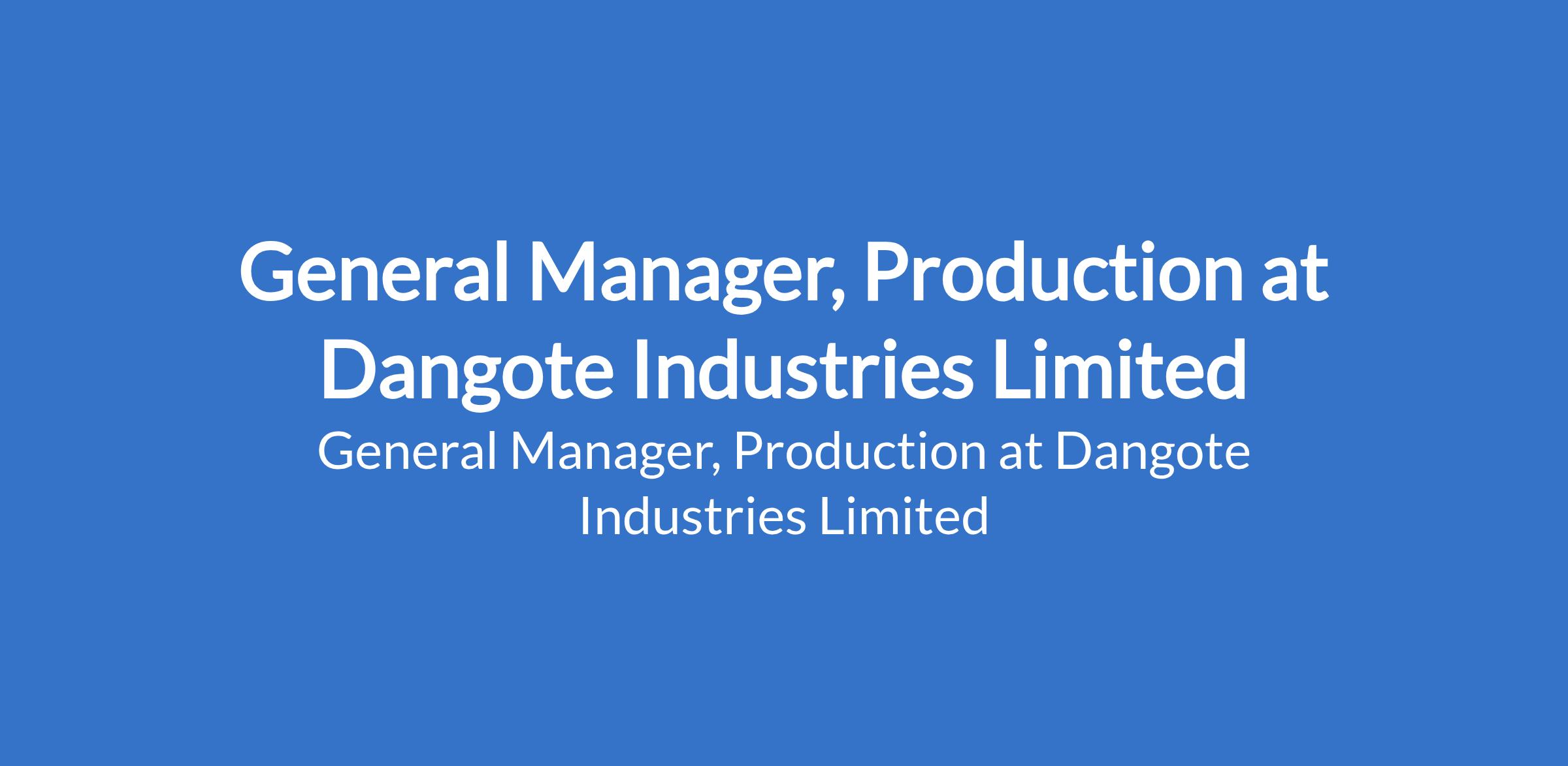 Dangote Industries Limited is recruiting to fill the position of: General Manager, Production. The position is located in Lagos State. Interested candidates should possess a Bachelor's Degree in Chemical Engineering with a minimum of twenty-Five (25) years of relevant work experience, of which Ten (10) must be in a management position.