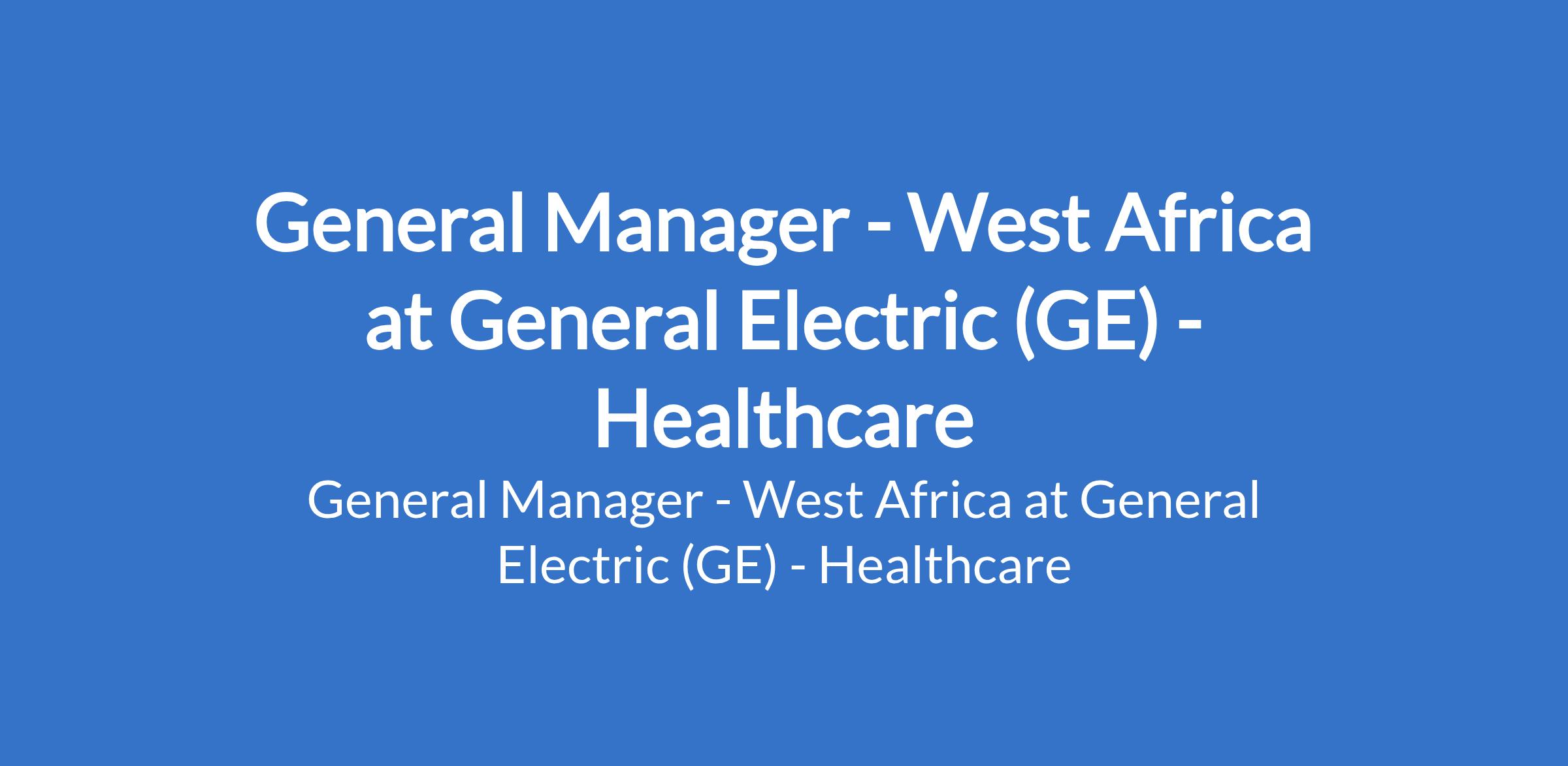 General Electric (GE) - Healthcare is recruiting to fill the position of: General Manager - West Africa. The position is located in Lagos State. Interested candidates should possess a Bachelors Degree with experience in Business Management, Sales, Marketing or equivalent years of experience in progressive leadership positions within the Healthcare industry with in-depth knowledge of healthcare market.