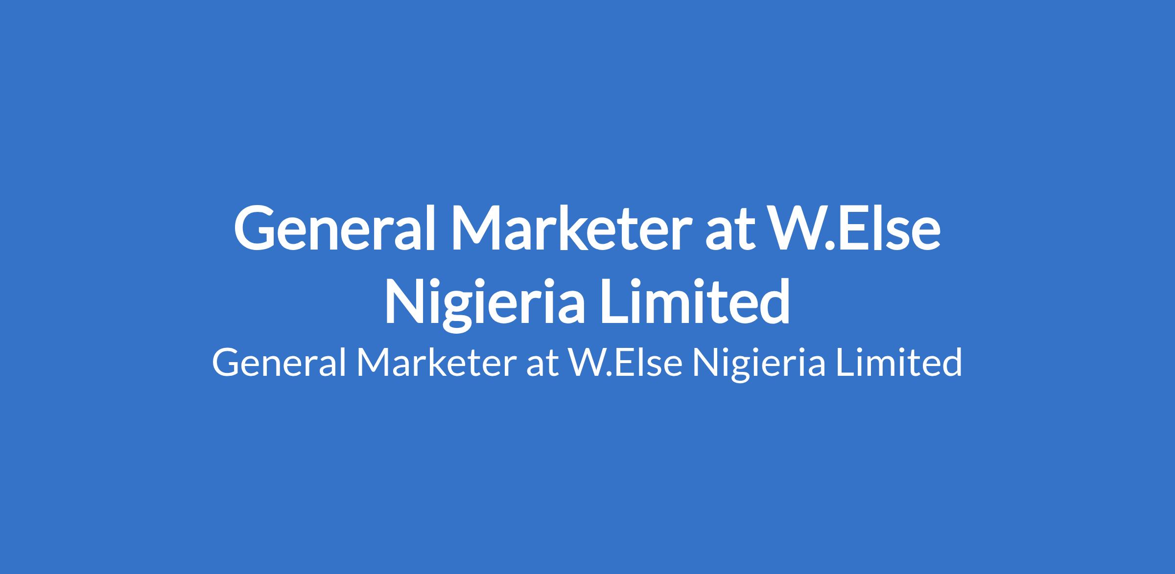 W.Else Nigieria Limited is recruiting to fill the position of: General Marketer. The position is located in Port Harcourt, Rivers State. Salary: N100,000 - N150,000 / Month. Interested candidates should possess an OND / HND / BSc in Marketing, Business Administration, Mass Communication, Economics or related field with 1 - 3 years of work experience in field marketing and direct sale, digital marketing (social media, email, online ads), market research, customer engagement, brand promotion and lead generation.