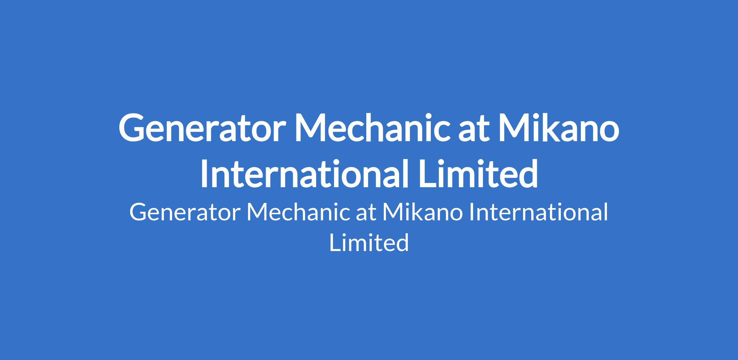Mikano International Limited is recruiting to fill the position of: Generator Mechanic. The position is located in Ogba, Lagos State. Salary: N160,000 N240,000 net. Interested candidates should possess a Trade Test Certificate, OND, or Technical College qualification in Mechanical Engineering, or professional certification is an advantage with a minimum 3 years hands-on experience with diesel generators (20kVA500kVA).